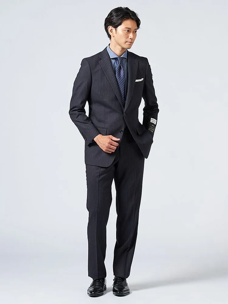 【ウール100%】スーツ2つボタン尾州素材使用ストライプSTOVEL&MASON秋冬