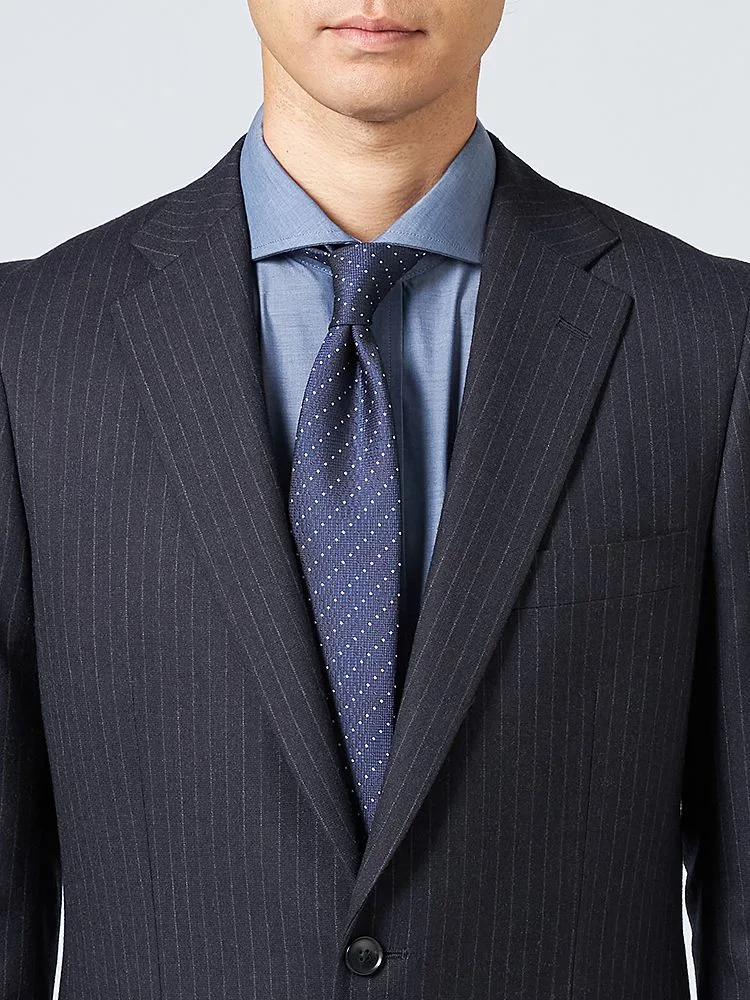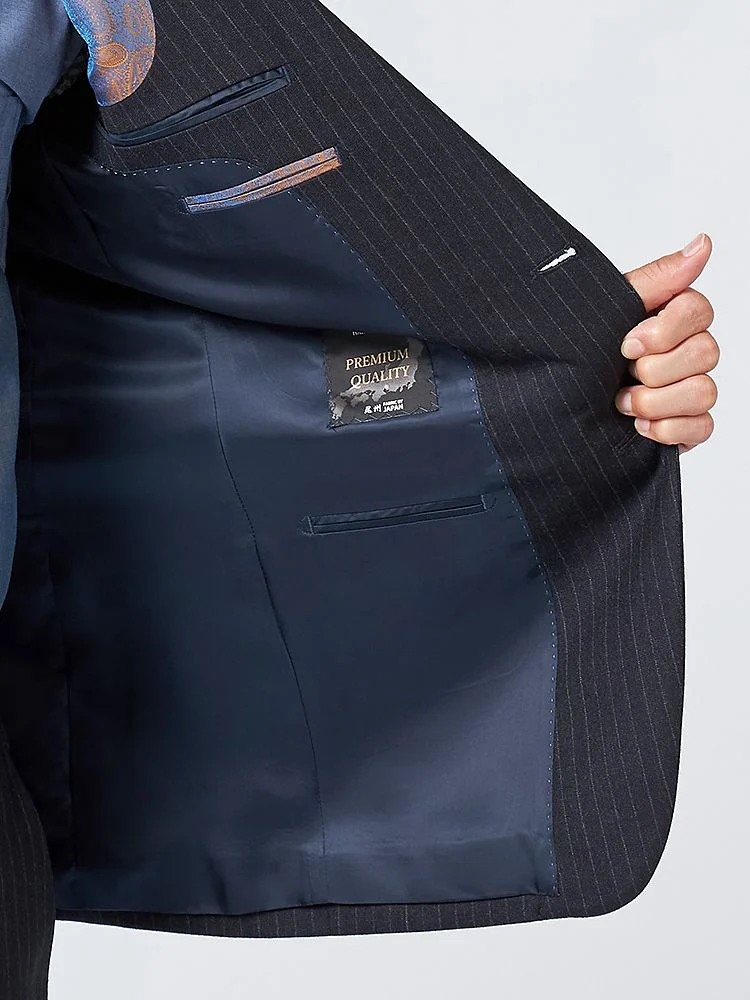 【上下ウォッシャブル】スリーピーススーツ2つボタン脚長スリムネイビーシャドウストライプNERO通年