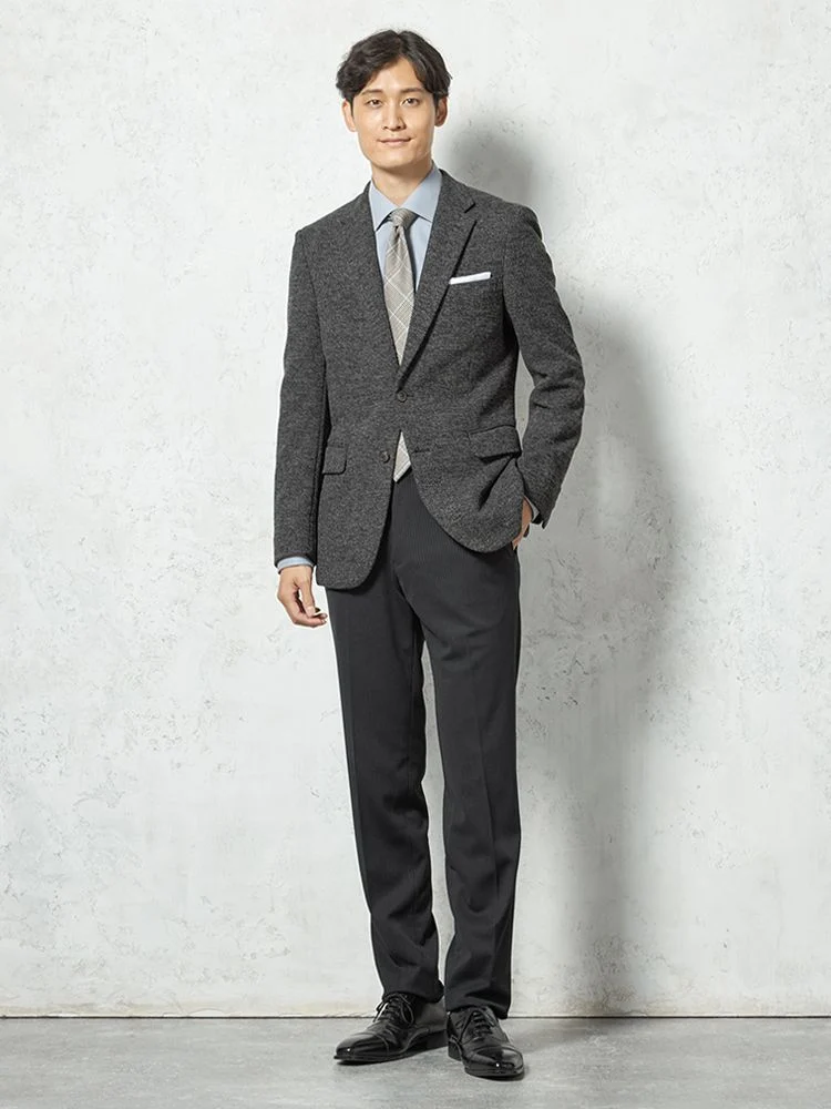 2つボタンのデザインで、クラシックなスタイルを演出。落ち着きと品のあるアイテムです。