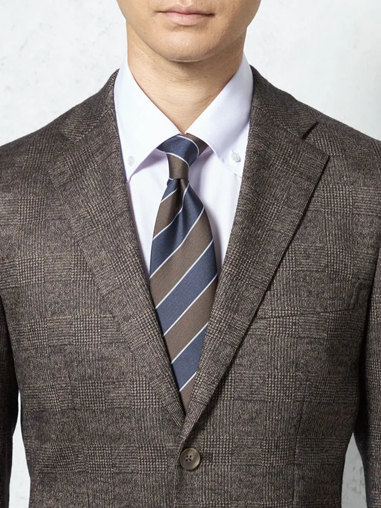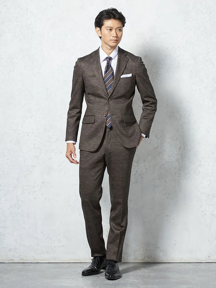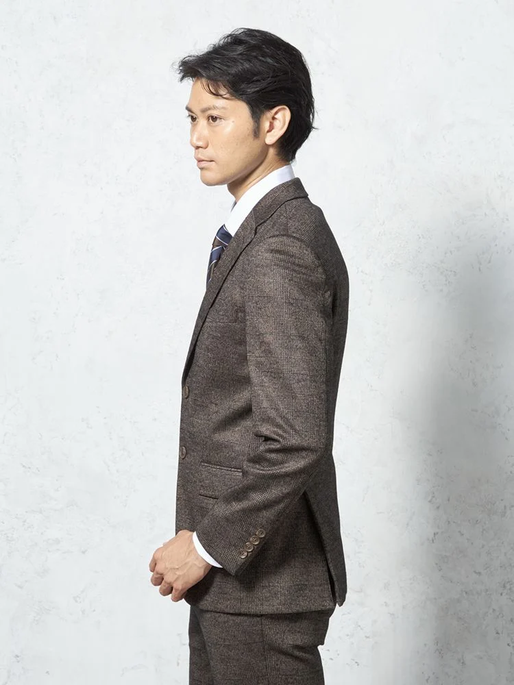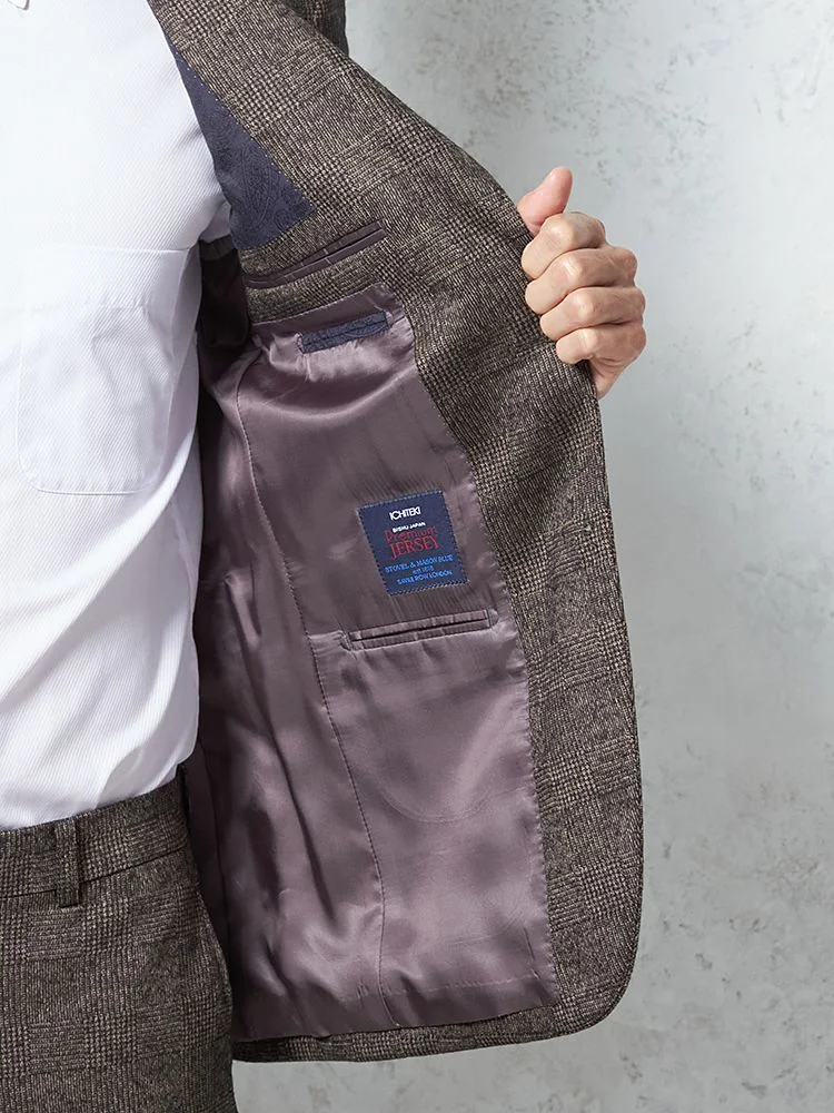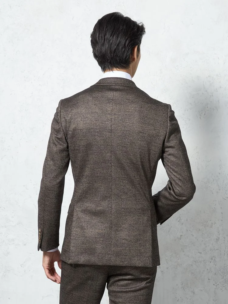 【ウール混】スーツ 2つボタン 尾州素材使用 ニット素材 ブラウン チェック S&M BLUE LABEL【i-Suit-アイスーツ-】秋冬