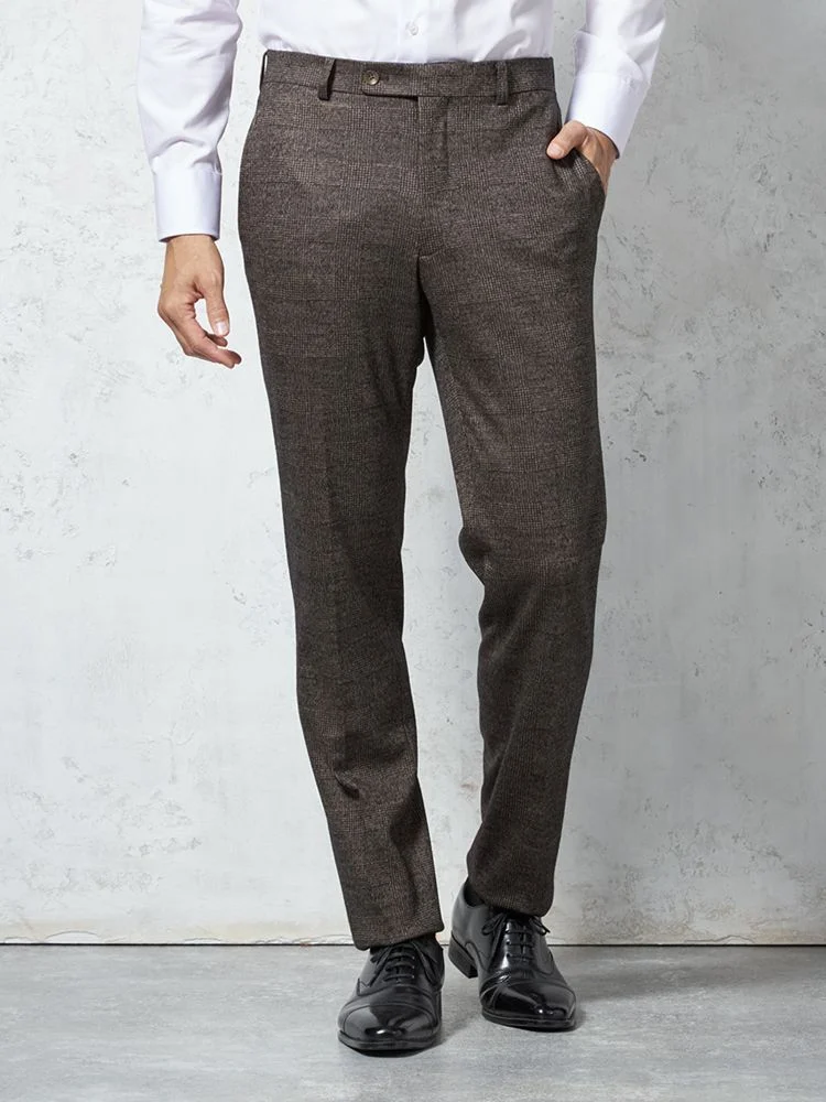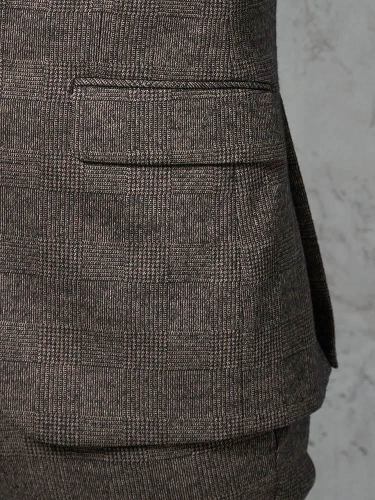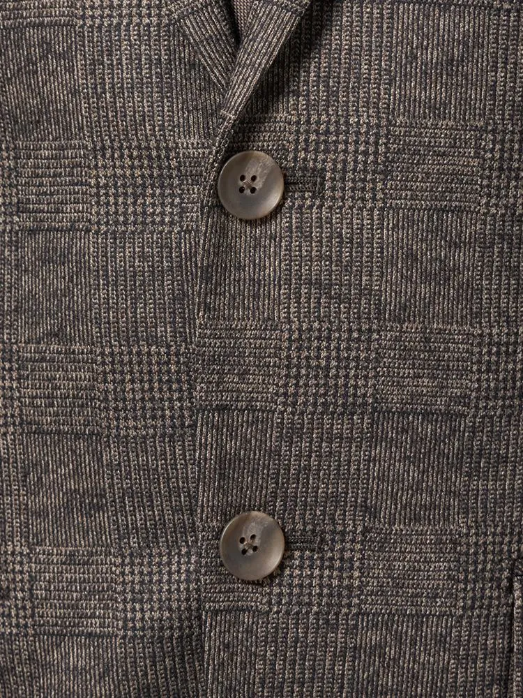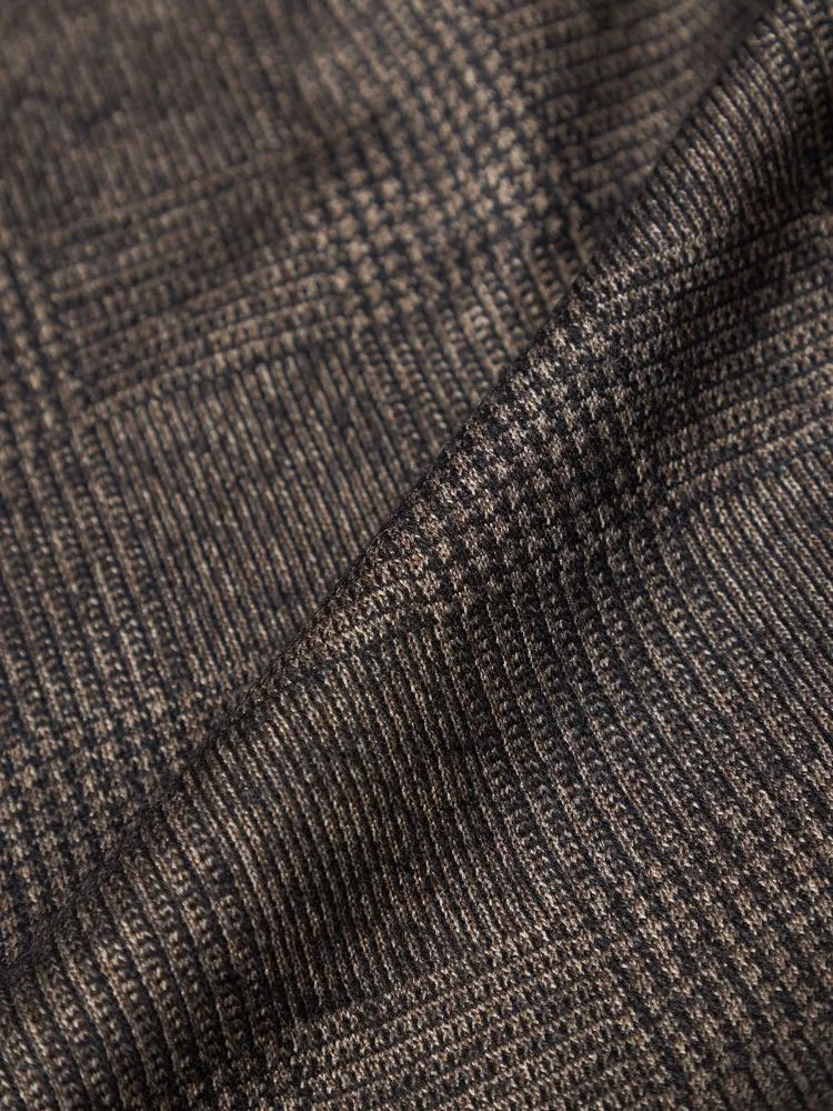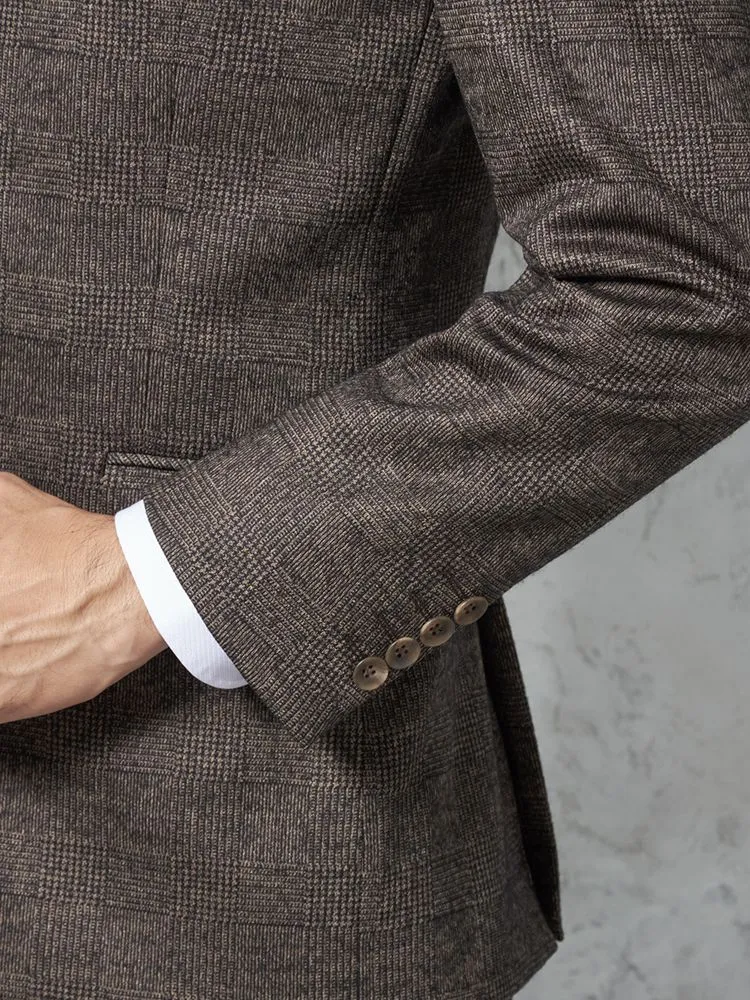 【ウール混】スーツ 2つボタン 尾州素材使用 ニット素材 ブラウン チェック S&M BLUE LABEL【i-Suit-アイスーツ-】秋冬