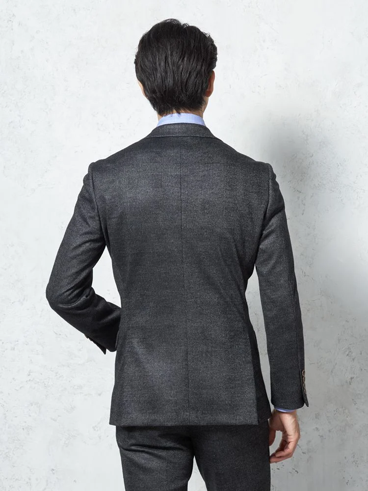 【ウール混】スーツ 2つボタン 尾州素材使用 ニット素材 グレー チェック S&M BLUE LABEL【i-Suit-アイスーツ-】秋冬