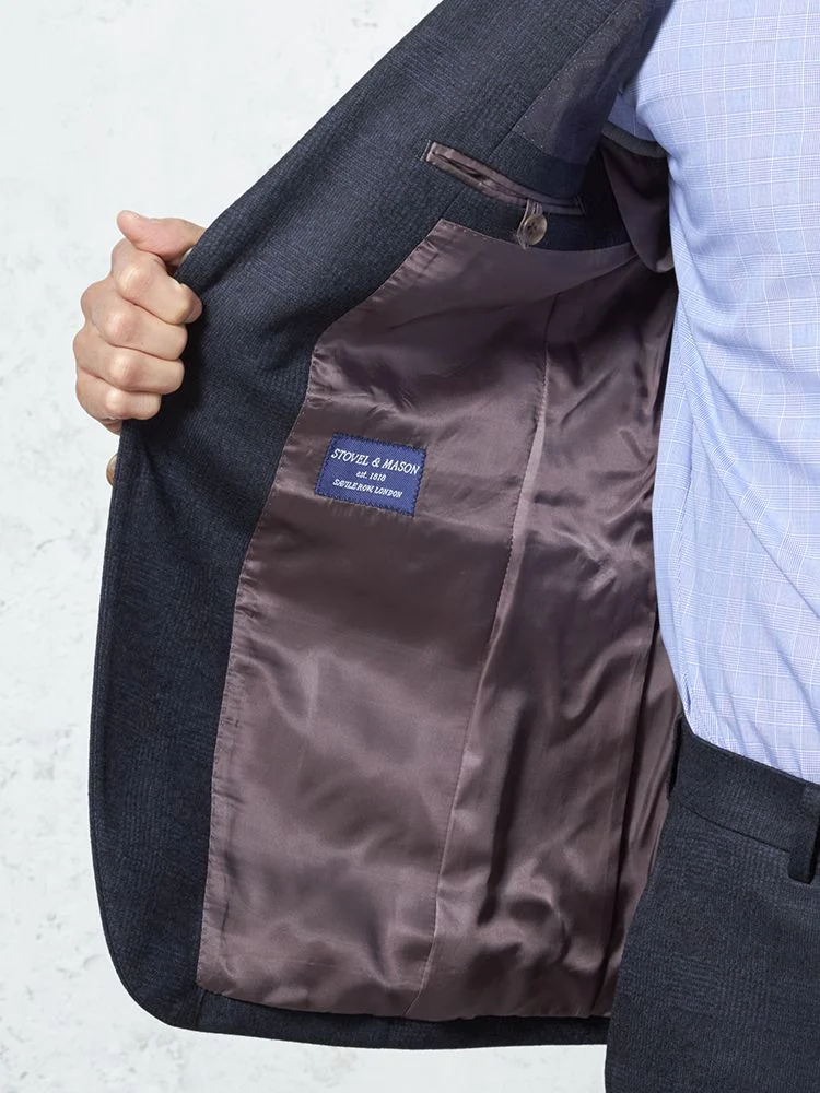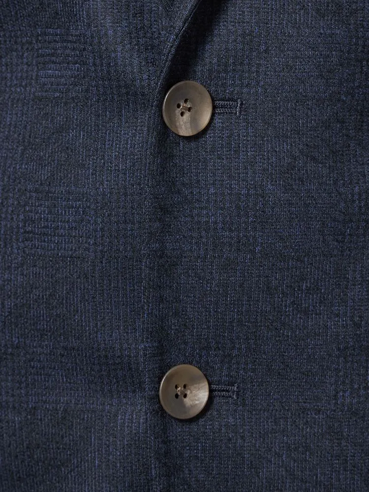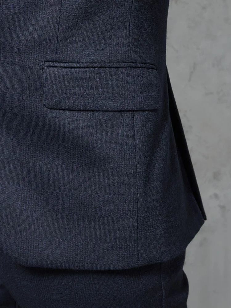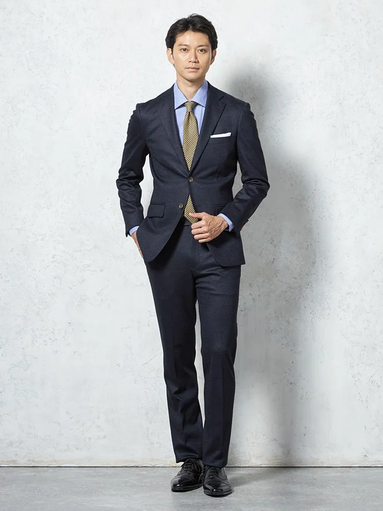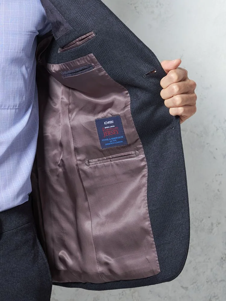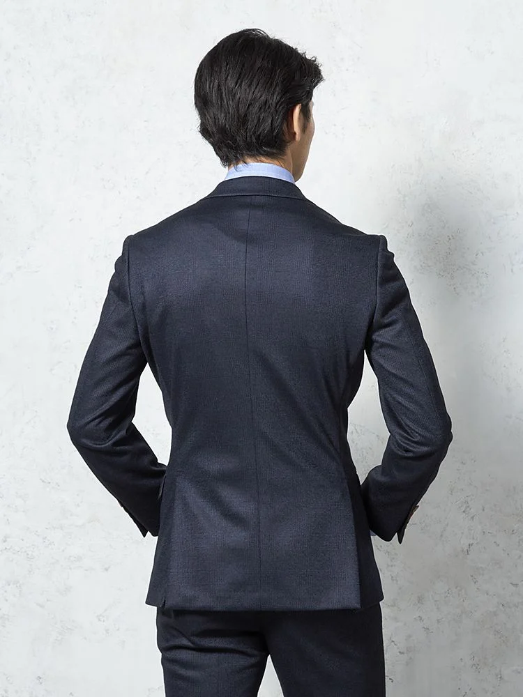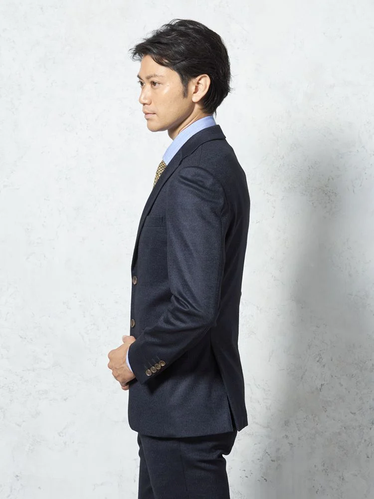 【ウール混】スーツ 2つボタン 尾州素材使用 ニット素材 ネイビー チェック S&M BLUE LABEL【i-Suit-アイスーツ-】秋冬