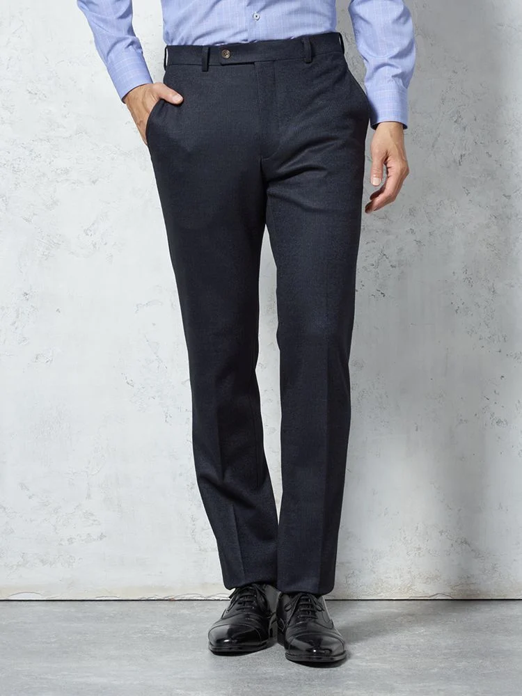 パンツの腰回りに生地の折り込みがなく、スッキリとしたシルエットを実現します。シンプルで洗練された印象を与え、すっきりとした着こなしが可能です。
