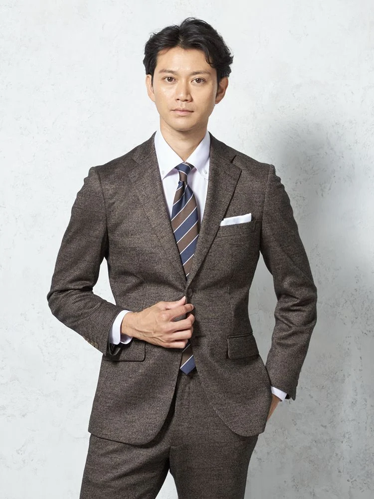 【ウール混】スーツ2つボタン尾州素材使用ニット素材ブラウンチェックS&MBLUELABEL【i-Suit-アイスーツ-】秋冬