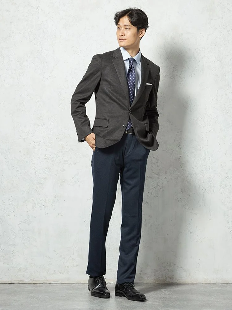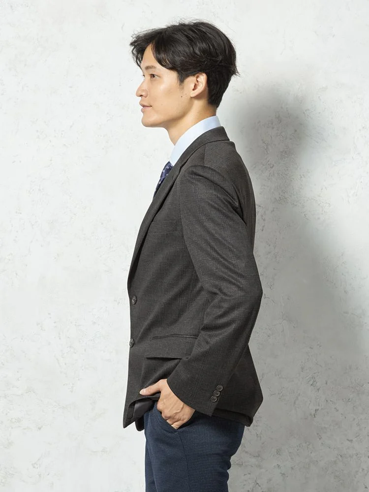 切り込みが1本のセンターベントデザインです。細身でスッキリとしたシルエットが特徴で、快適な着心地を提供します