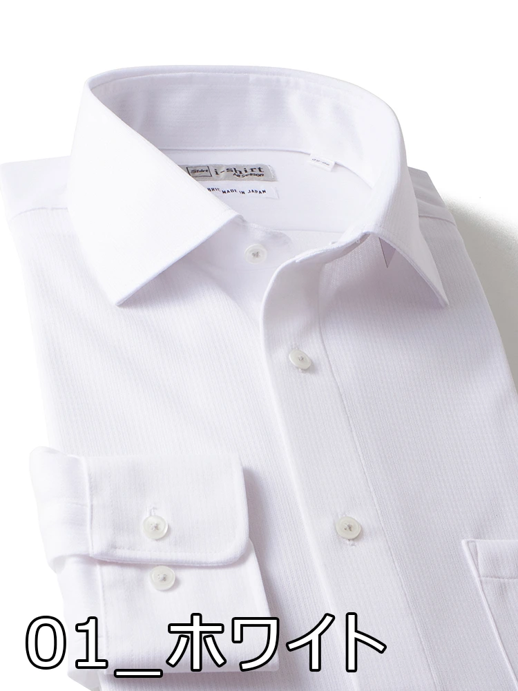 【完全ノーアイロン】長袖アイシャツセミワイドストレッチ速乾織柄無地ワイシャツ通年