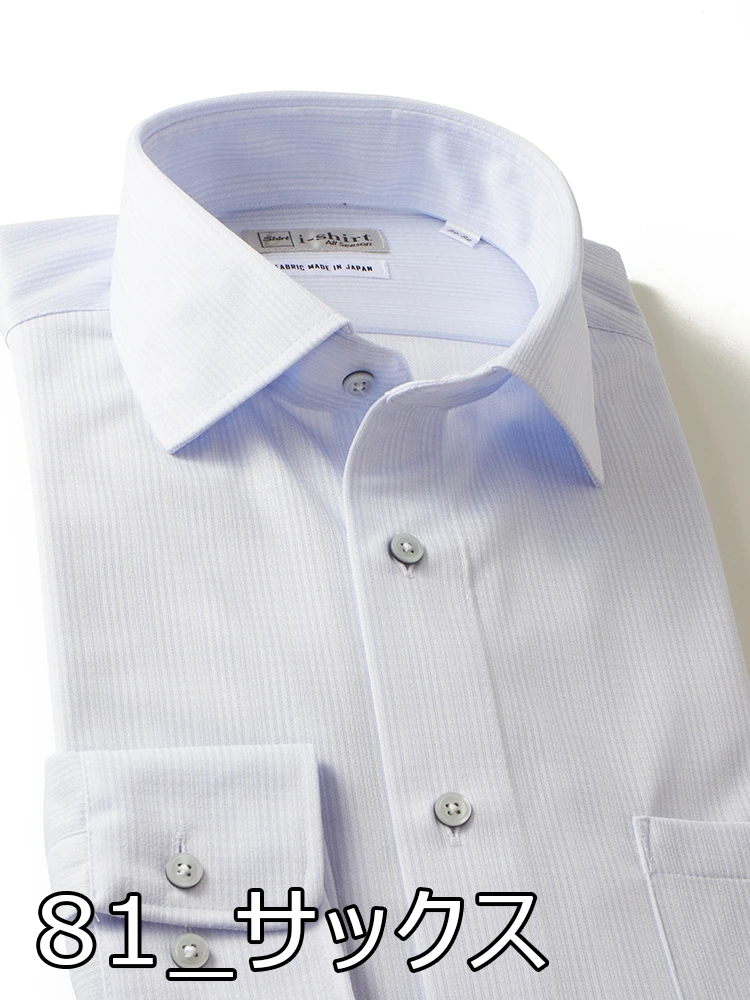 【完全ノーアイロン】長袖 アイシャツ セミワイドカラー ドビーストライプ ワイシャツ 通年(サックス)