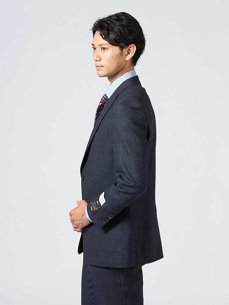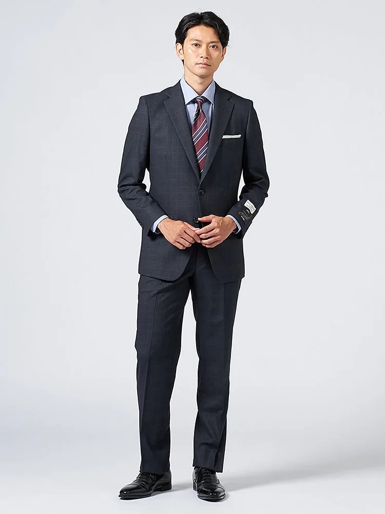 尾州産、英国羊毛&ションヘル(低速織)こだわりのプレミアム素材の高級感あふれる2つボタンスーツ。
