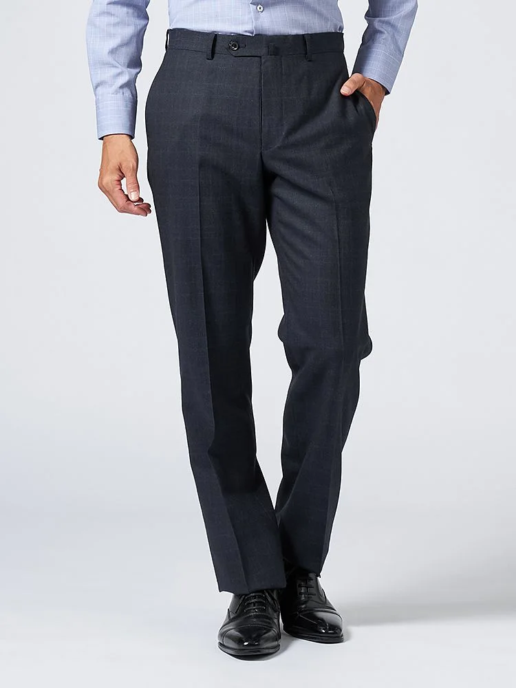 ラインを絞ったジャケット、ノータックのすっきりとしたパンツで仕立てた細身のシルエットです。