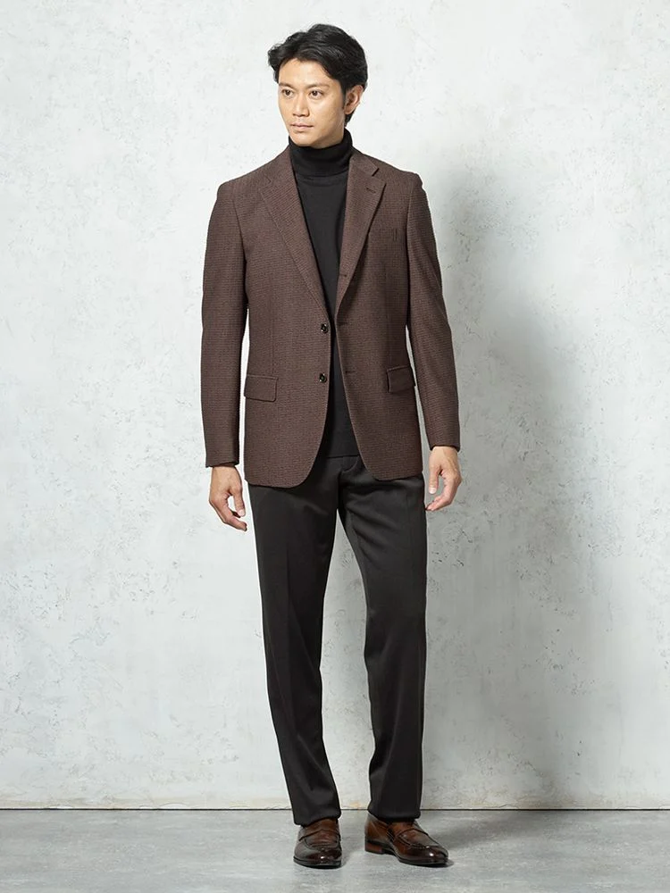 2つボタンのデザインで、クラシックなスタイルを演出。落ち着きと品のあるアイテムです。