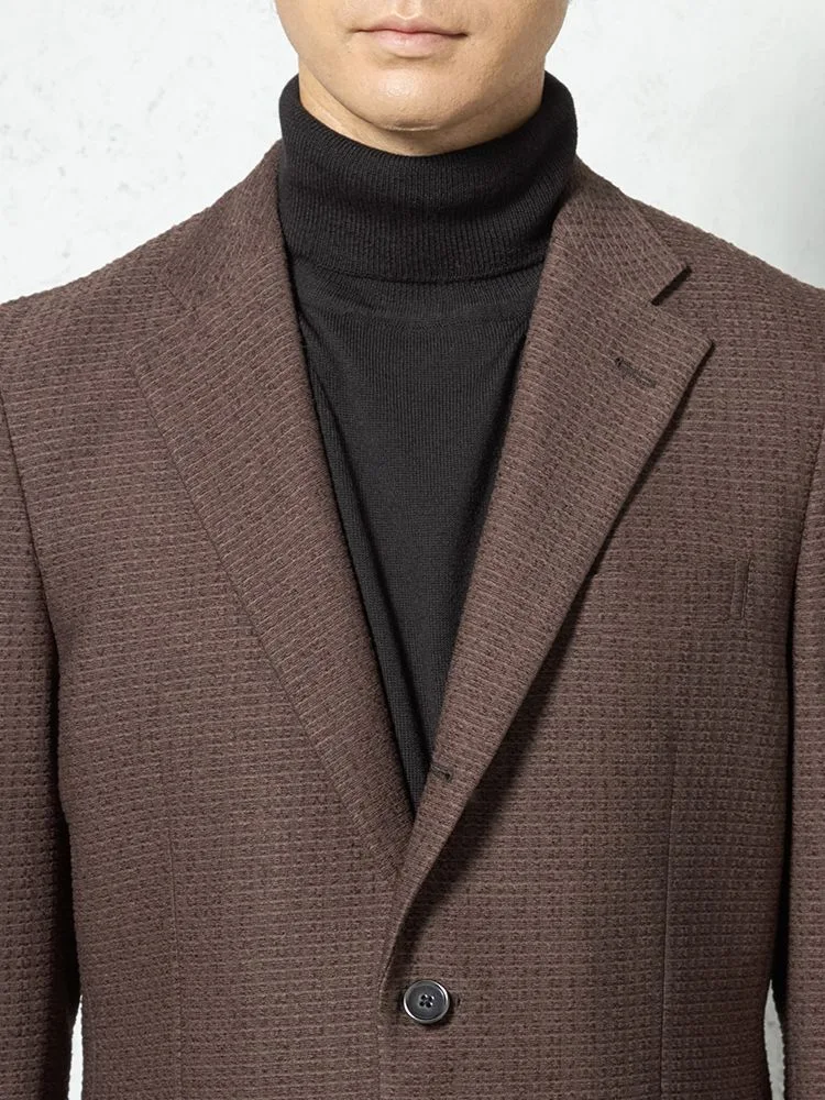 一見無地ライクに見えるさりげないチェック柄がポイント、深みのあるブラウンカラーで落ち着いた雰囲気で着られます。