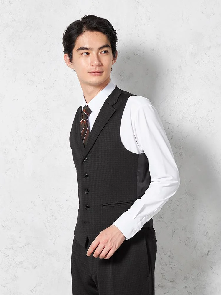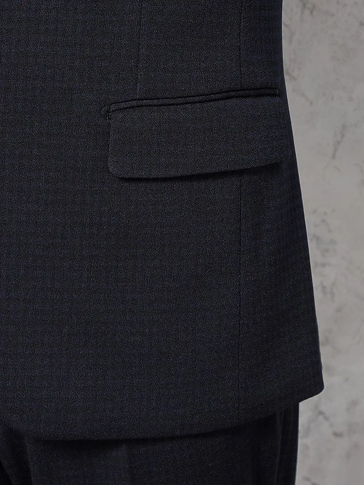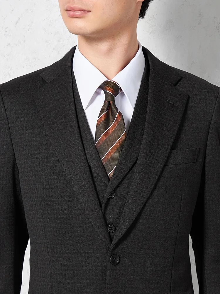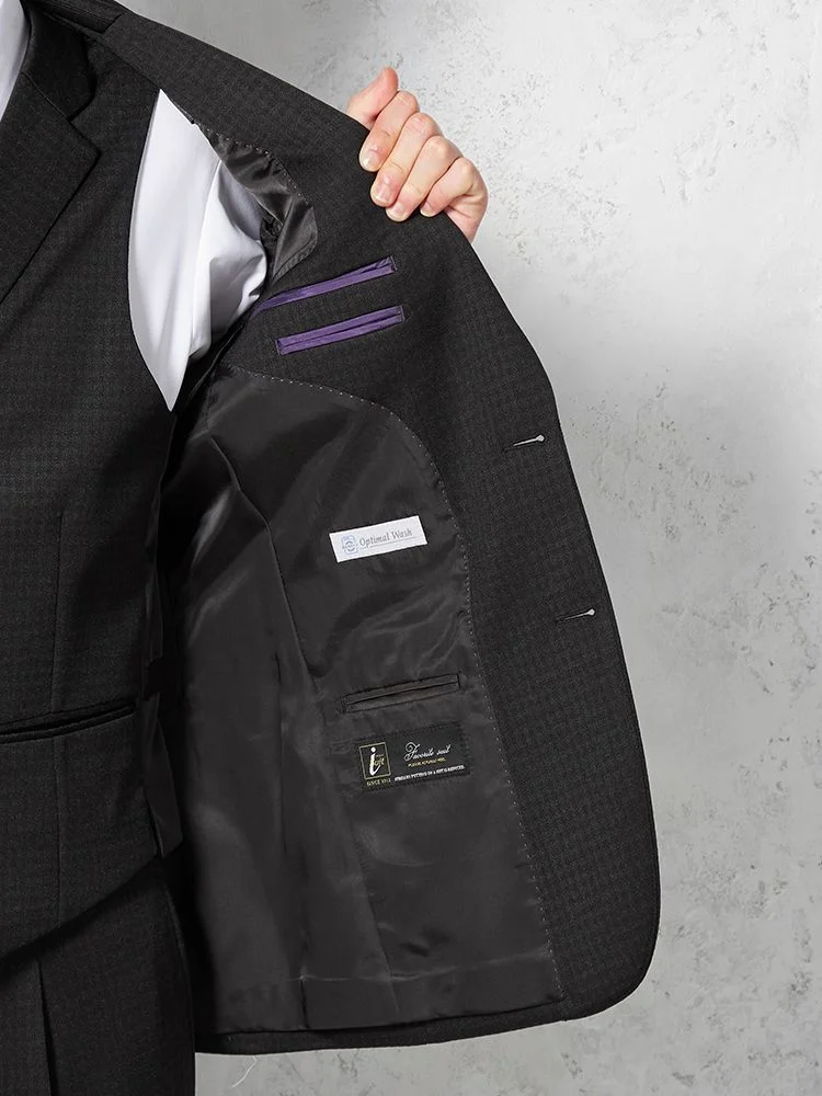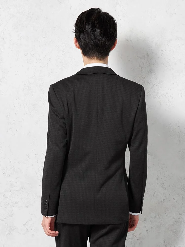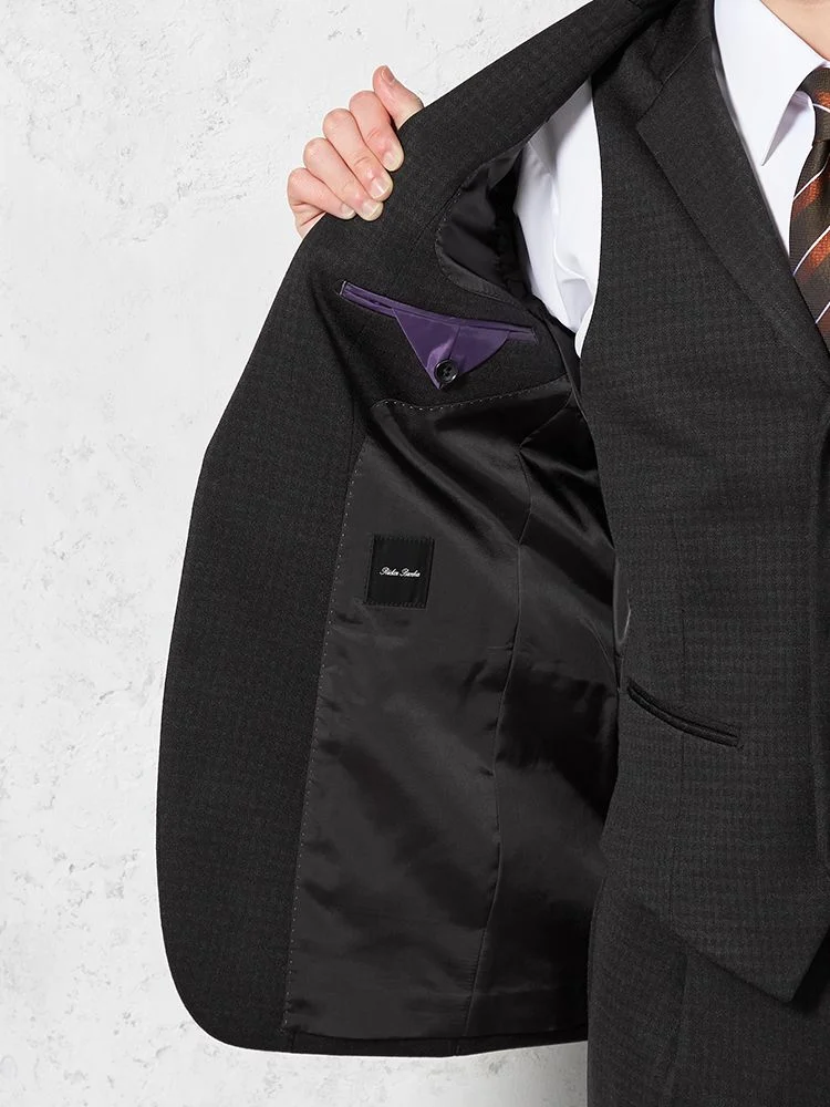 あわせるシャツやネクタイを選ばない深みのあるカラーに、さりげないチェック柄で華やかさをプラスしました。