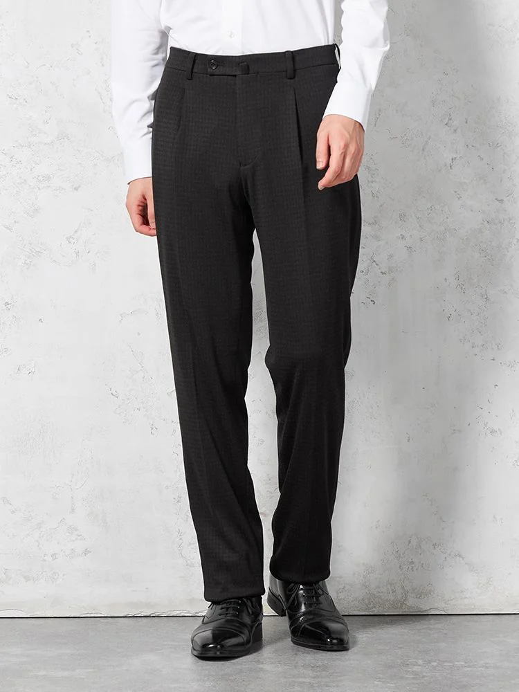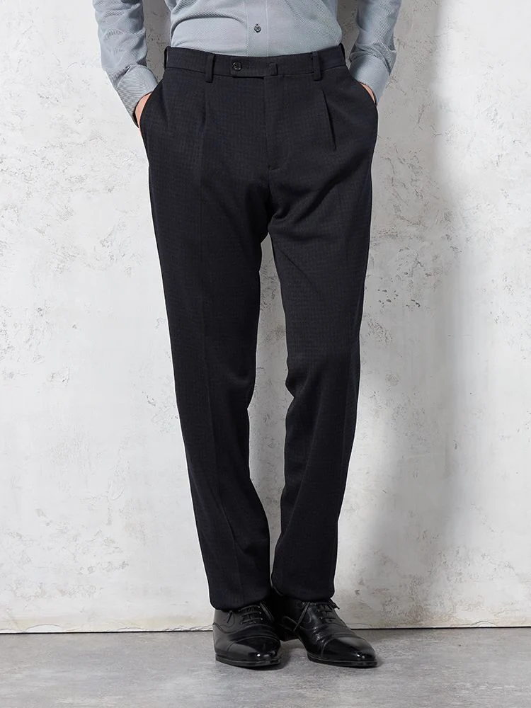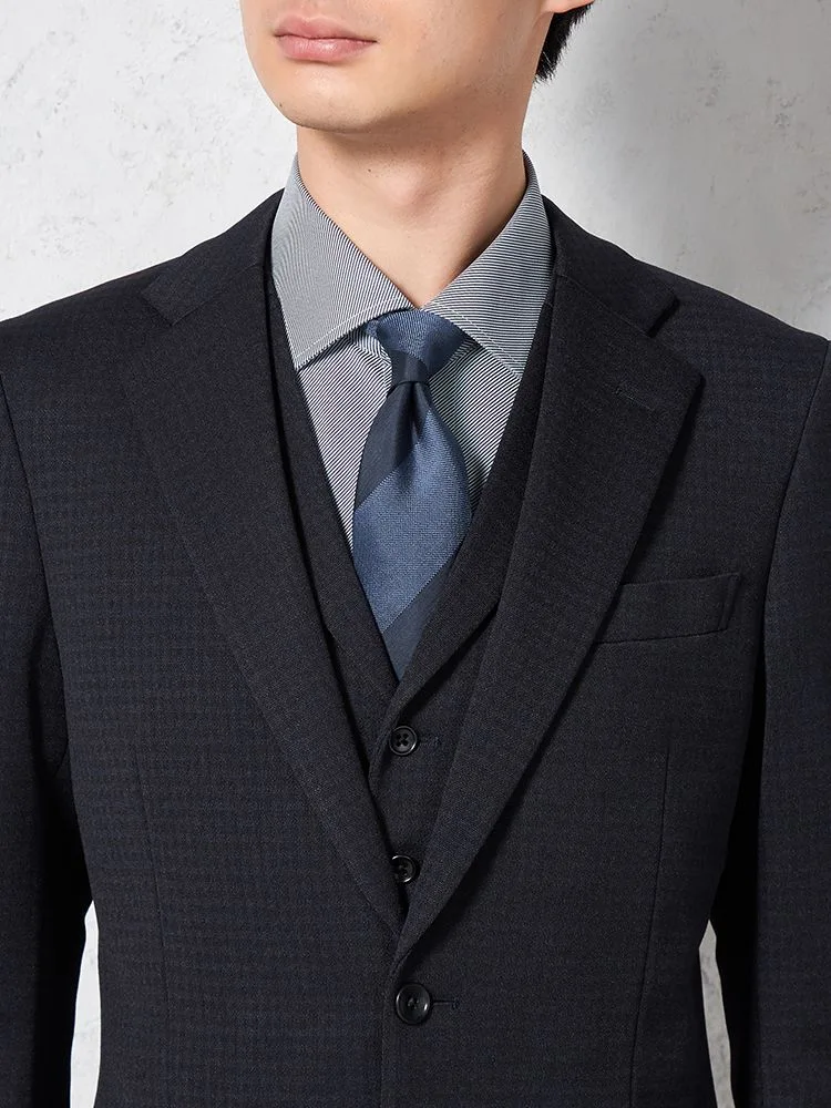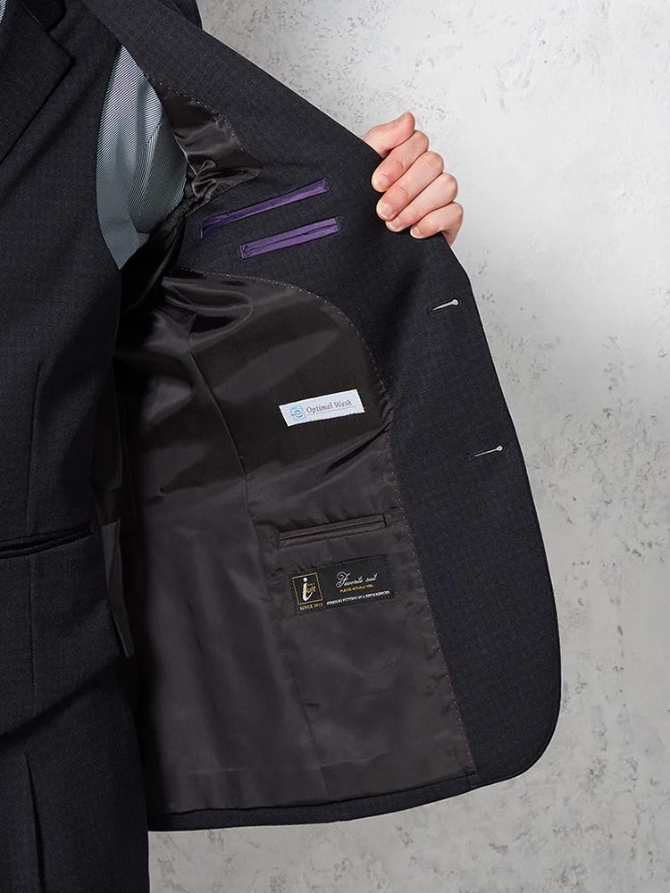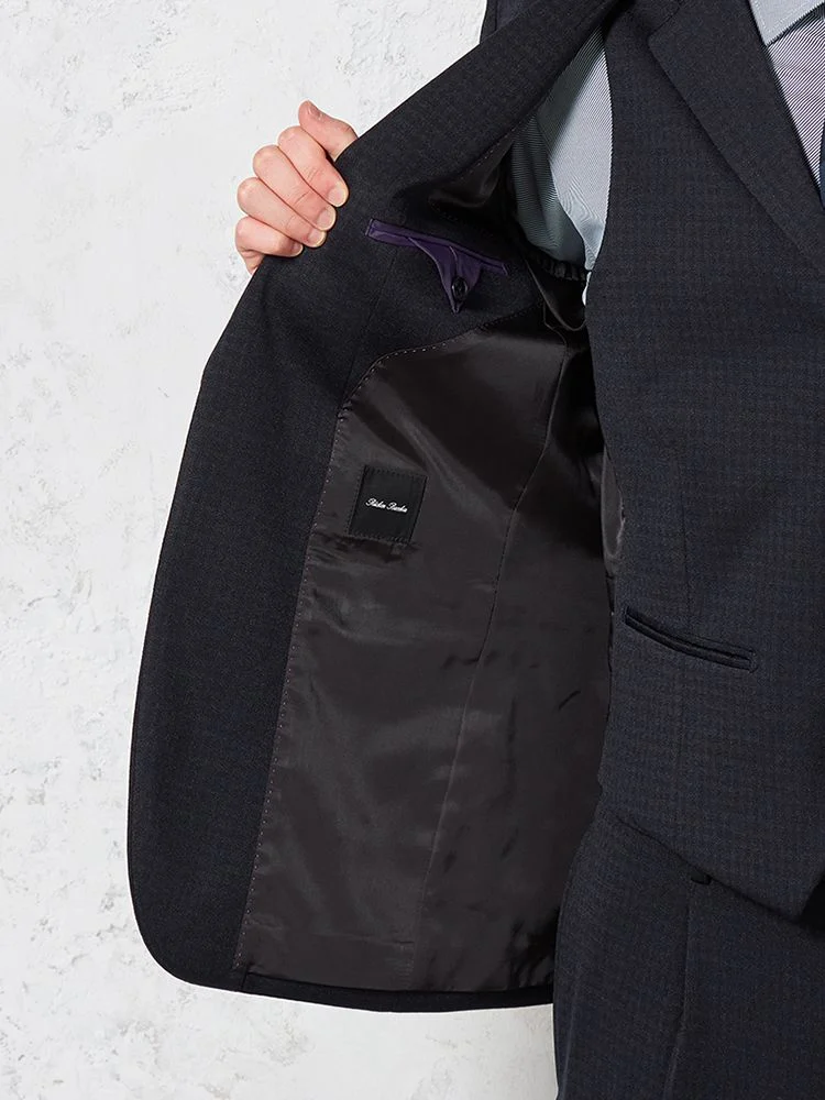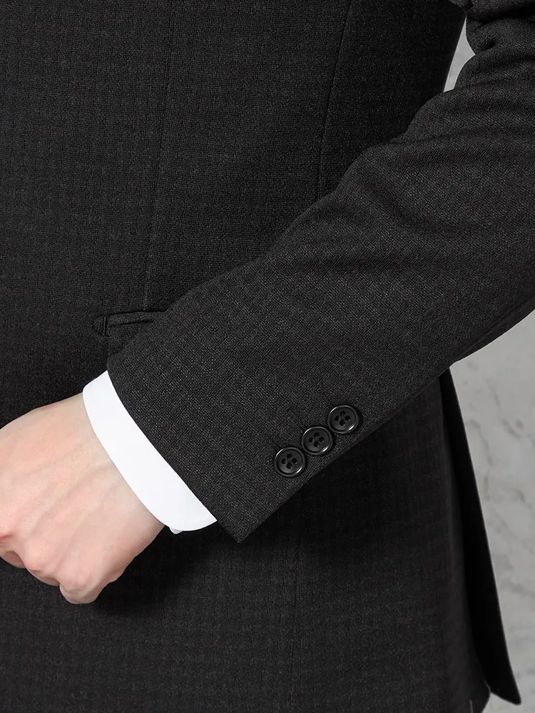 あわせるシャツやネクタイを選ばない深みのあるカラーに、さりげないチェック柄で華やかさをプラスしました。