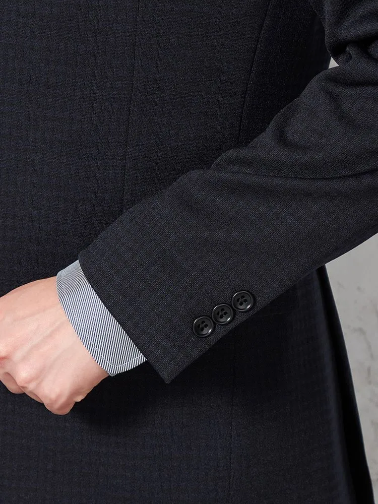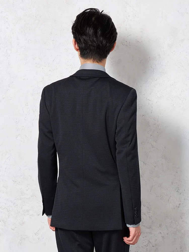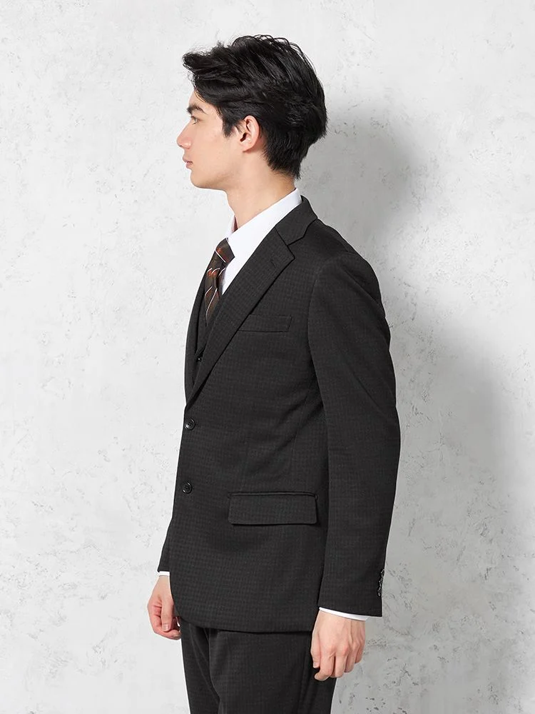 【上下ウォッシャブル】スリーピーススーツ2つボタンウール混ストレッチ・防しわ千鳥格子nero秋冬