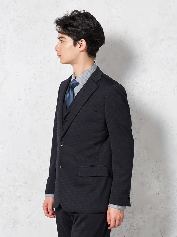 【CassetteCross】スリーピーススーツ2つボタン上下ウォッシャブルニット素材千鳥格子nero秋冬