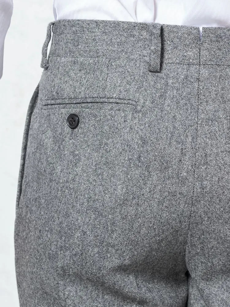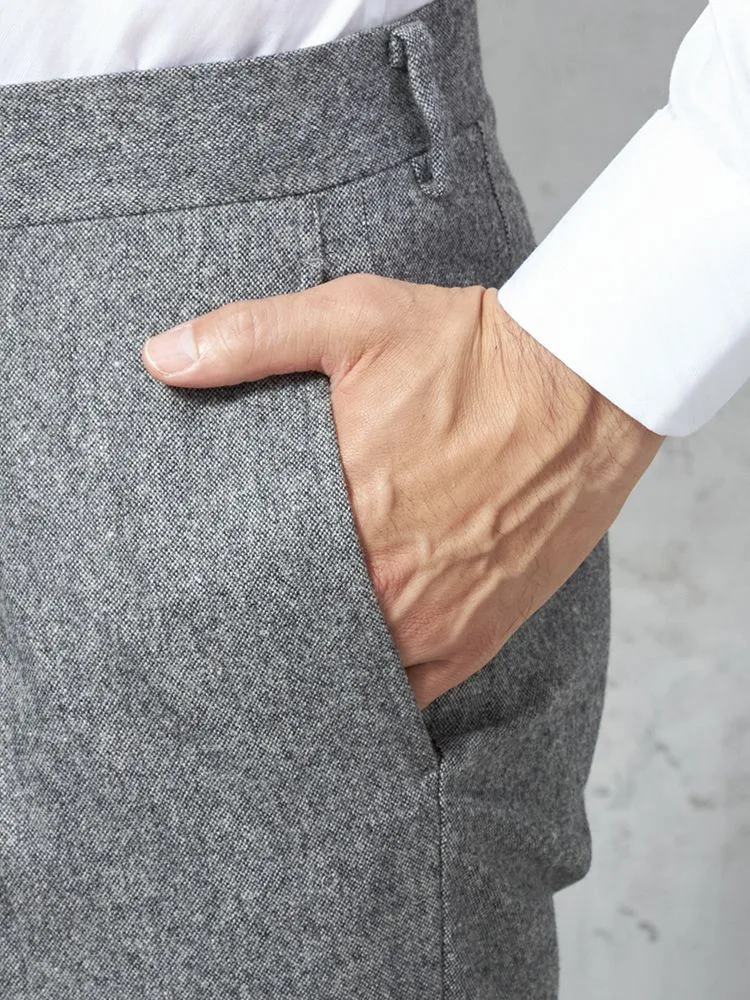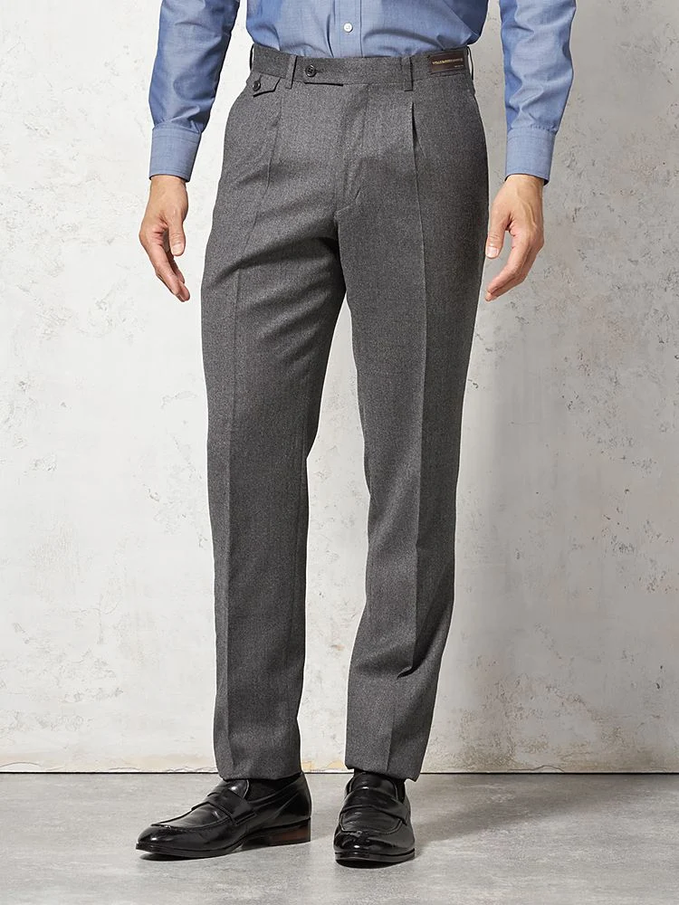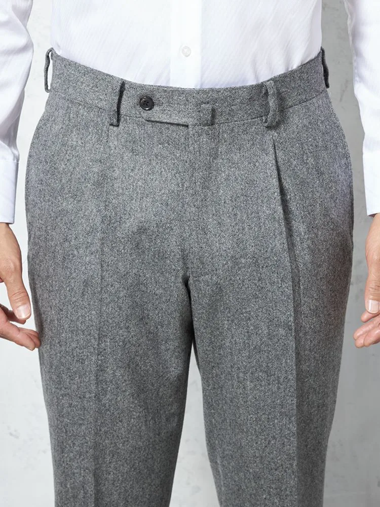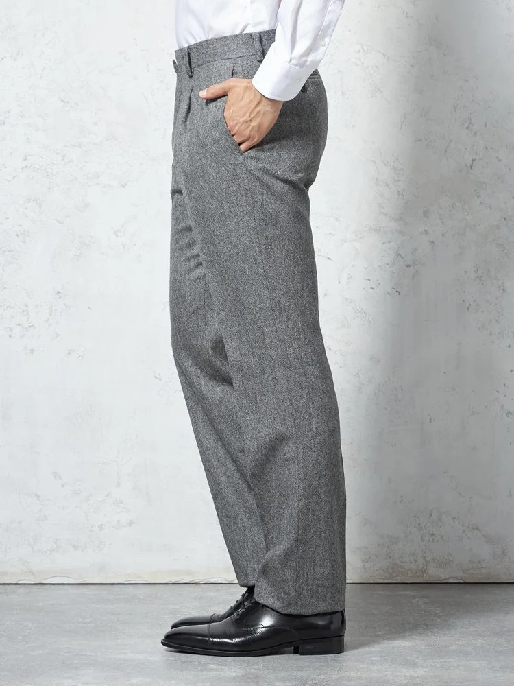 【ウール混】パンツ ワンタック ニット スラックス 無地 STOVEL&MASON 秋冬(L.グレー)