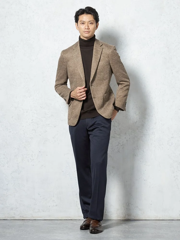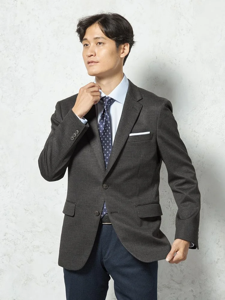 2つボタンのデザインで、クラシックなスタイルを演出。落ち着きと品のあるアイテムです。