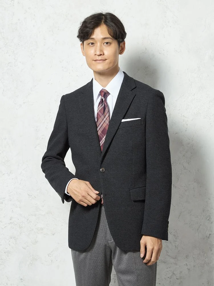 切り込みが1本のセンターベントデザインです。細身でスッキリとしたシルエットが特徴で、快適な着心地を提供します