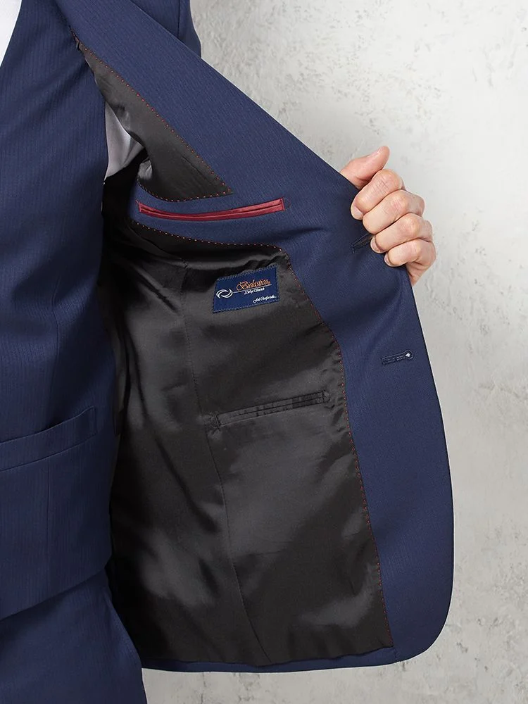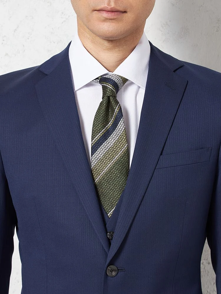 【上下ウォッシャブル】スリーピーススーツ2つボタン脚長スリムネイビーシャドウストライプNERO通年