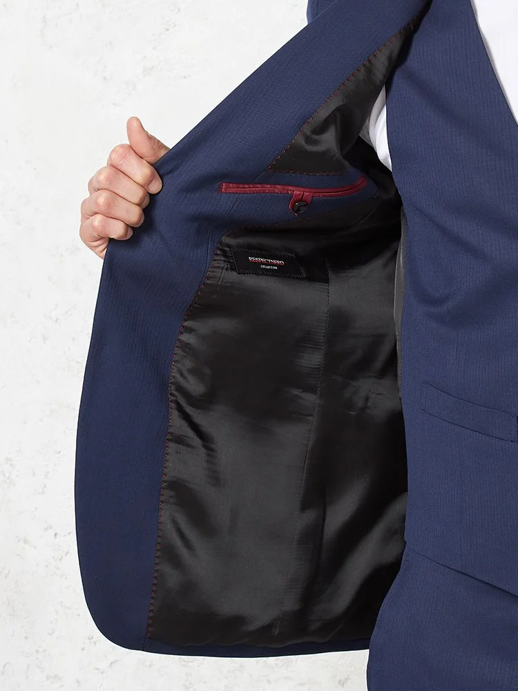2つボタンジャケットは内側の台場仕立てにより型崩れを防止。