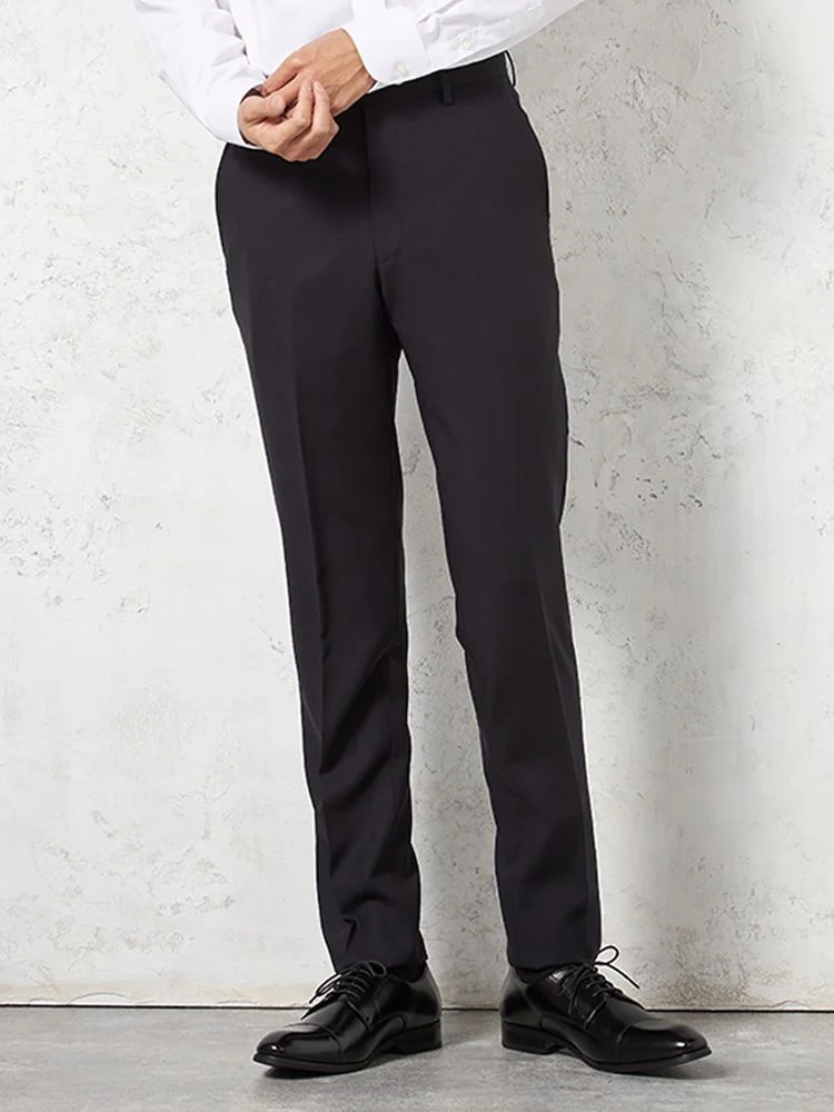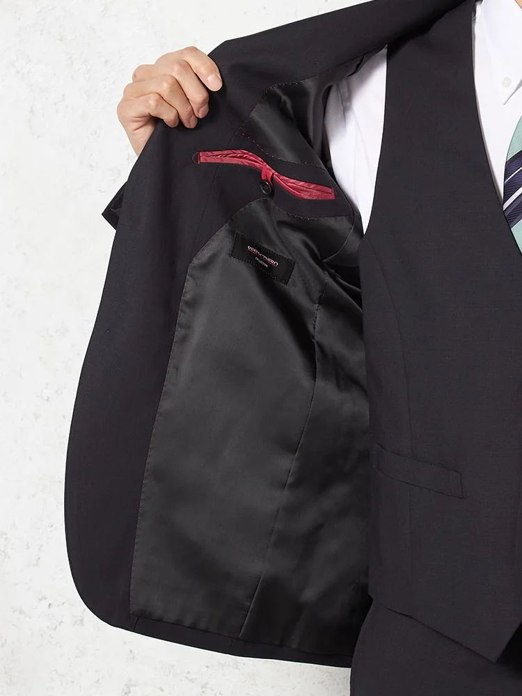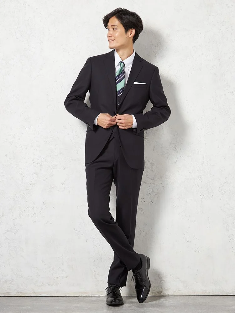 【ウール100%】スリーピーススーツ 2つボタン スリムシルエット ノータック 織柄無地 nero