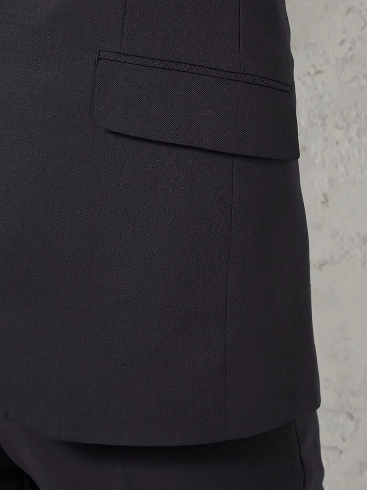 切り込みが1本のセンターベントデザインです。細身でスッキリとしたシルエットが特徴で、快適な着心地を提供します