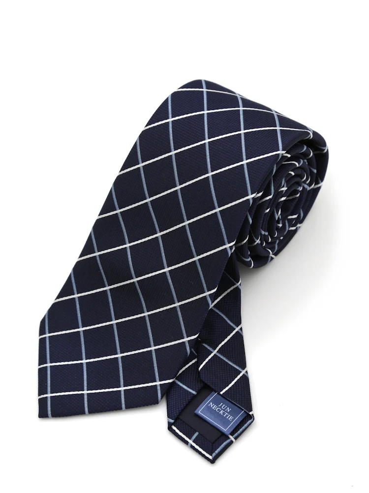 【シルク混】ネクタイ レギュラー リクルートタイ ネービー チェック nero 通年