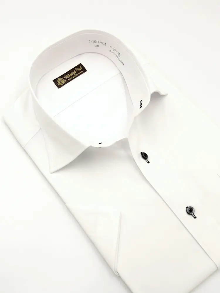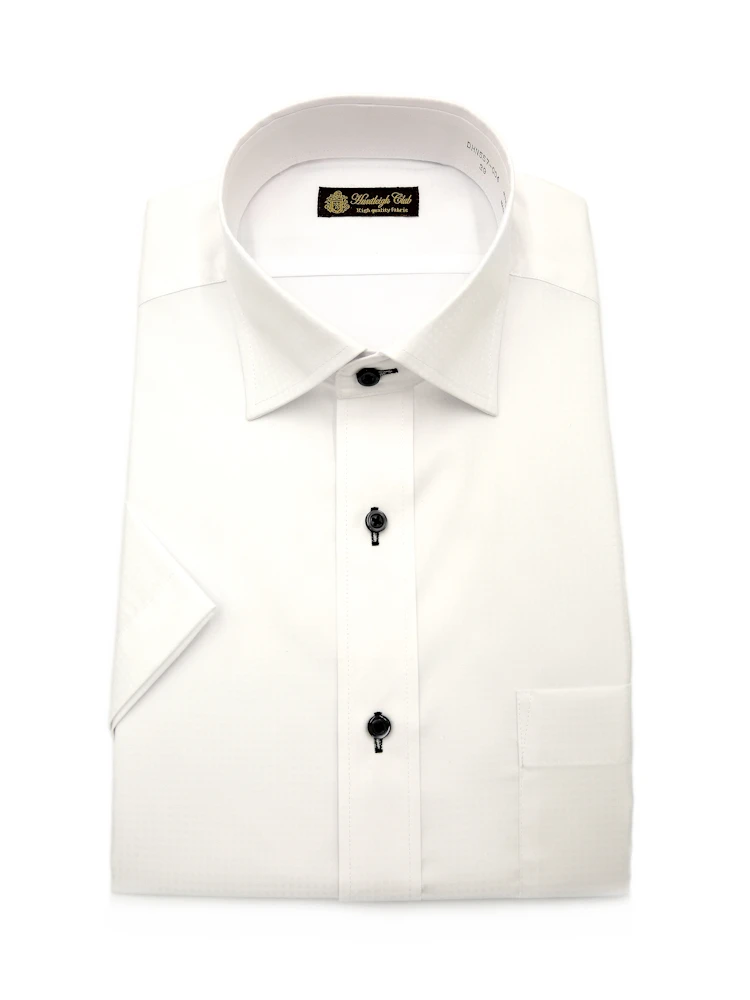 【形態安定】半袖 ワイシャツ セミワイド 白ドビー 織柄無地 ハントレークラブ 春夏