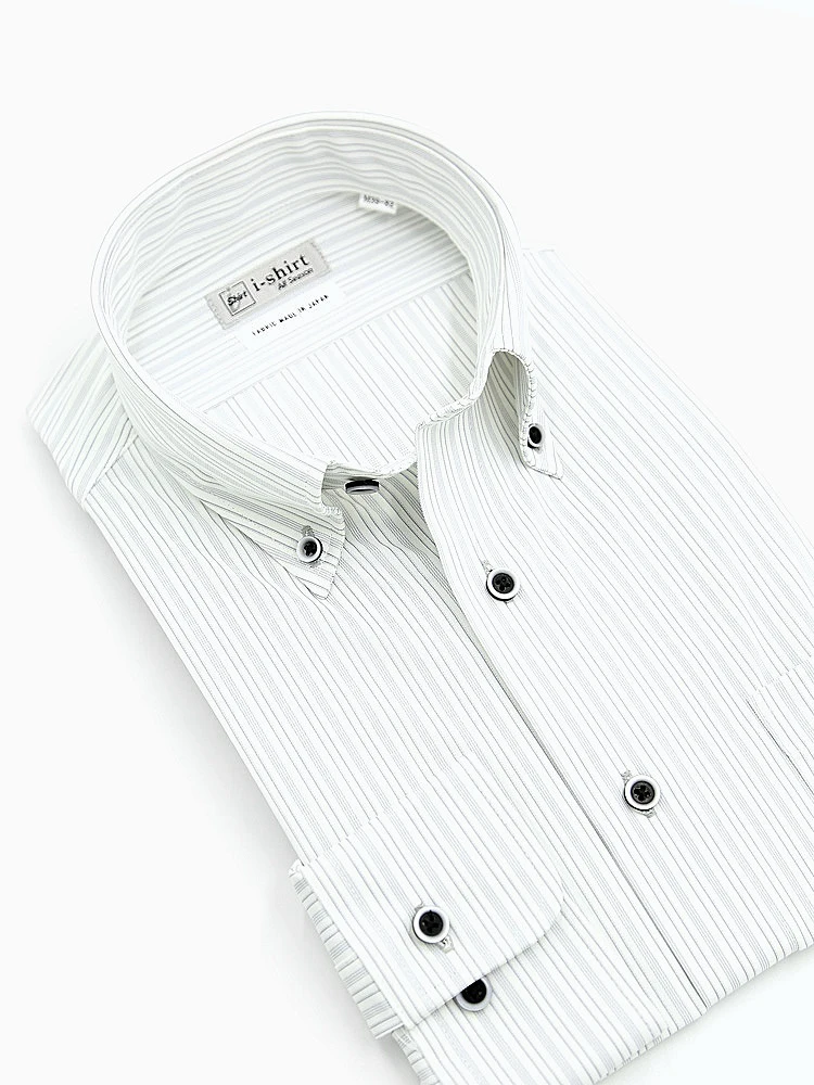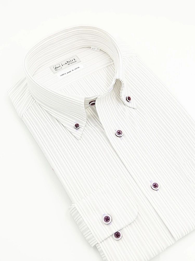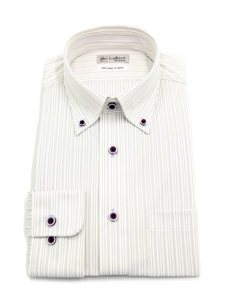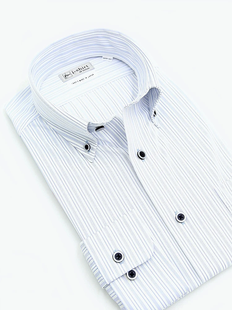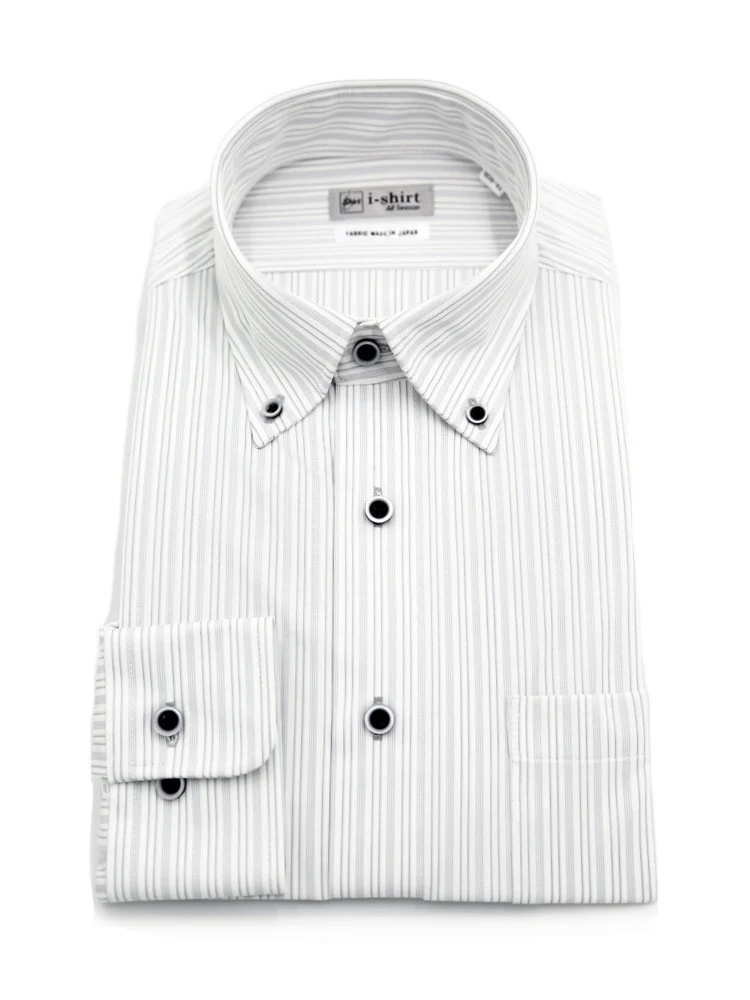 【完全ノーアイロン】長袖アイシャツボタンダウンストレッチストライプ調i-shirt通年
