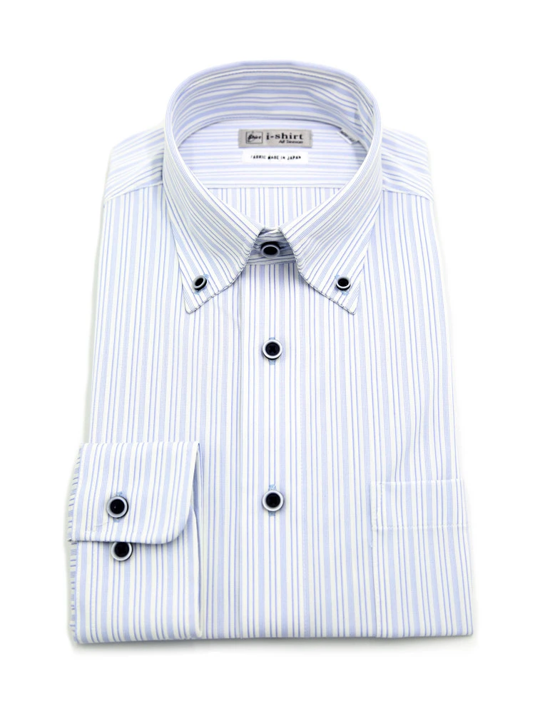 【完全ノーアイロン】長袖 アイシャツ ボタンダウン ストレッチ ストライプ ワイシャツ i-shirt 通年(サックス)