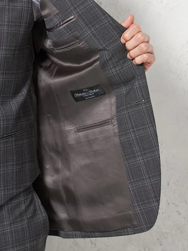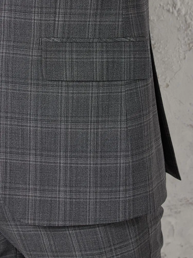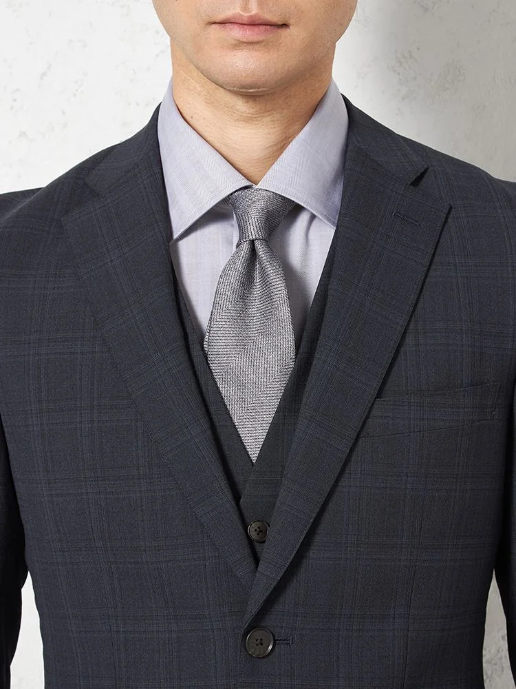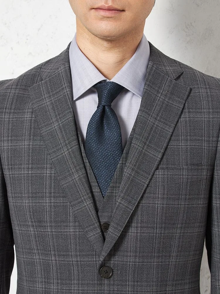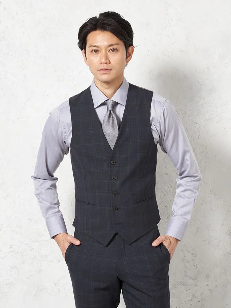 シックなチェック柄がクラシカルな3ピーススーツ。