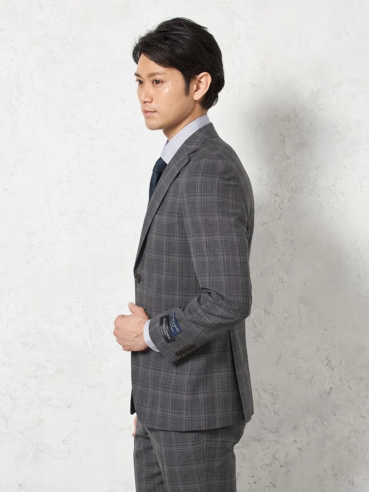 【パンツウォッシャブル】スリーピーススーツ 2つボタン ストレッチ ノータック ウインドペン S&M BLUE LABEL(C.グレー)