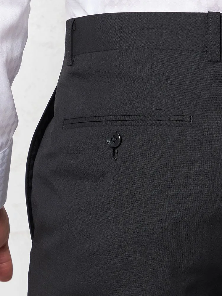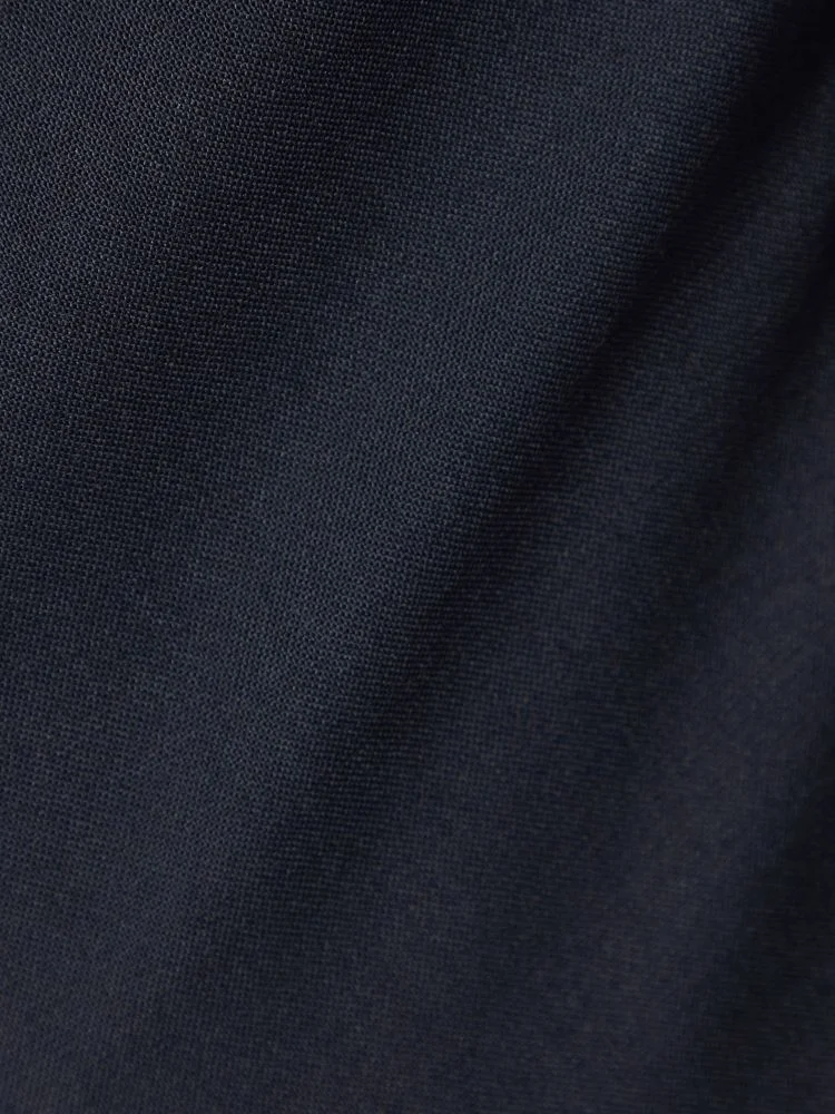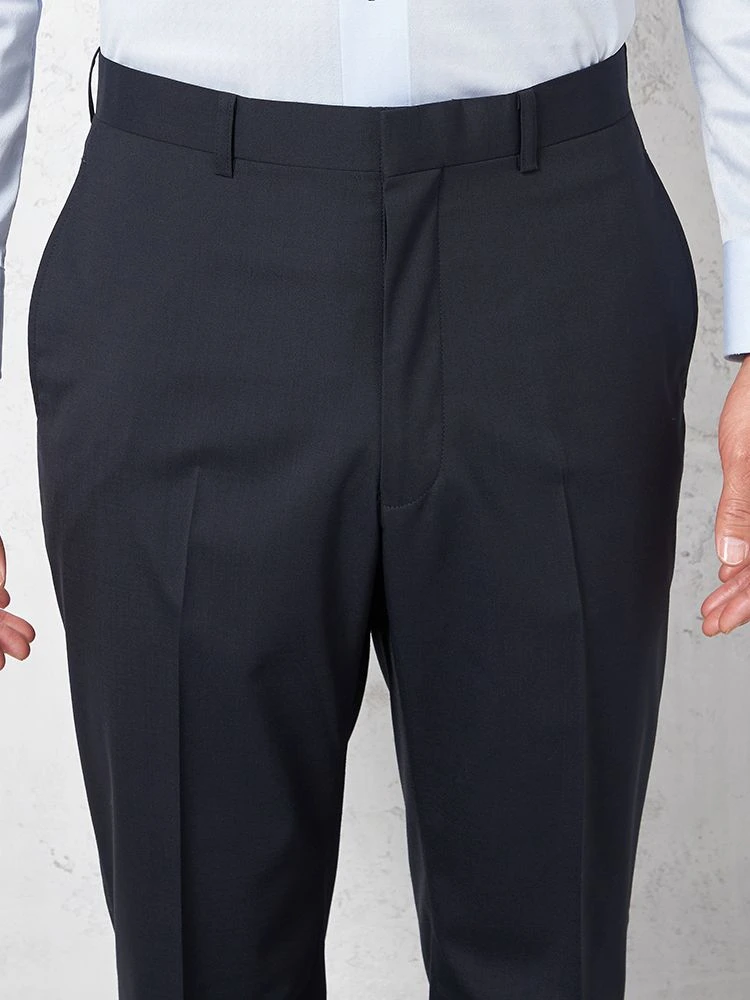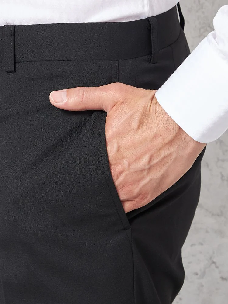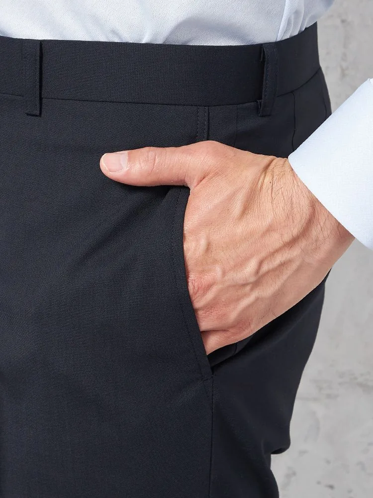 パンツの腰回りに生地の折り込みがなく、スッキリとしたシルエットを実現します。シンプルで洗練された印象を与え、すっきりとした着こなしが可能です。