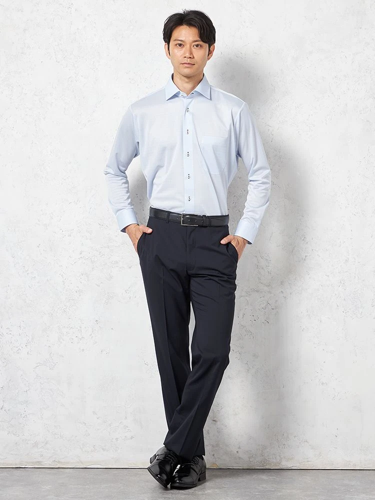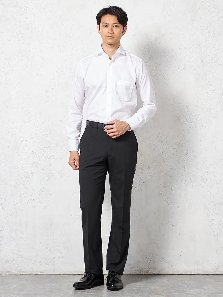 ノータックで腰まわりをすっきりとさせたシルエットで、スタイリッシュな着こなしが叶う1着です。