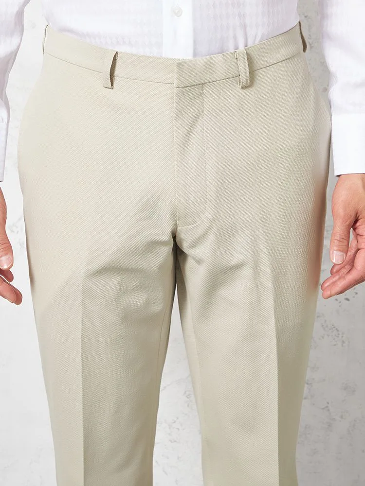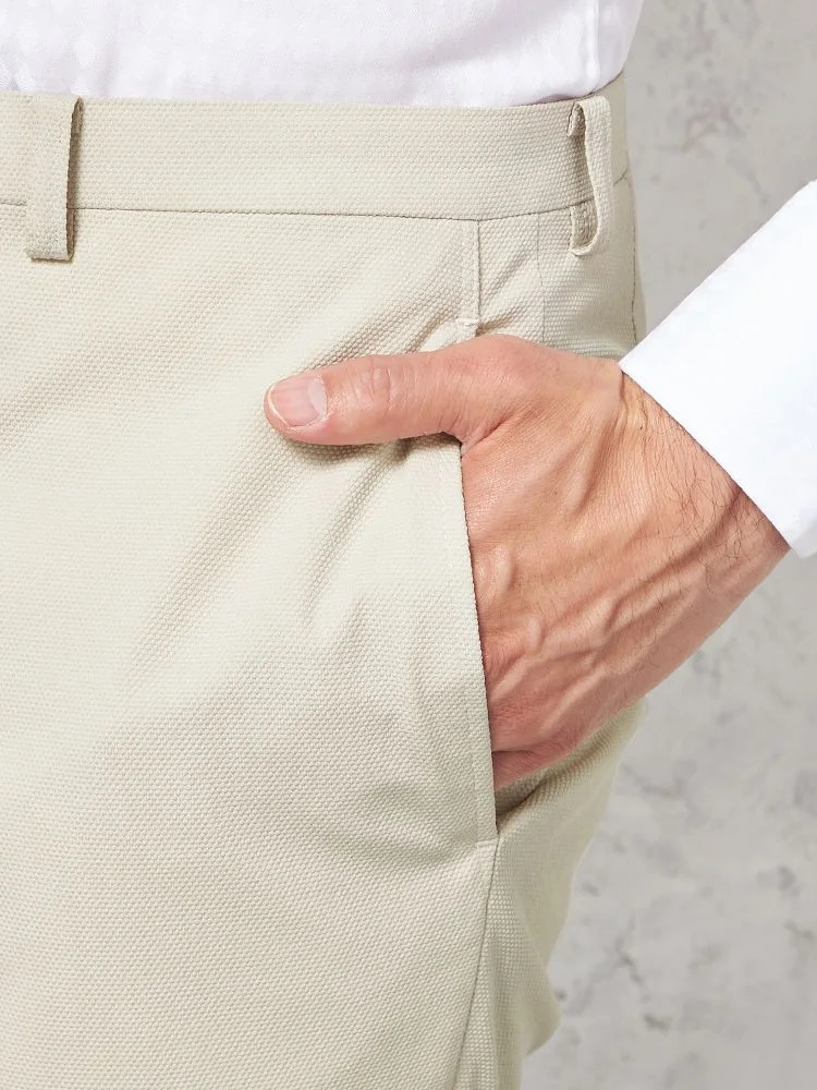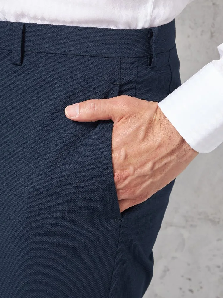 仕立ては、マットな質感と英国生地ならではのクラシカルな雰囲気が魅力のバーズアイ生地。ウエストストレッチ仕様で動きやすいのもポイント。