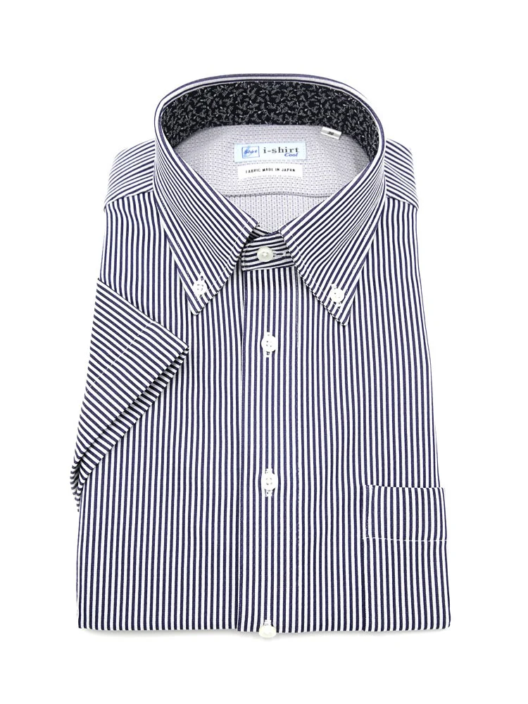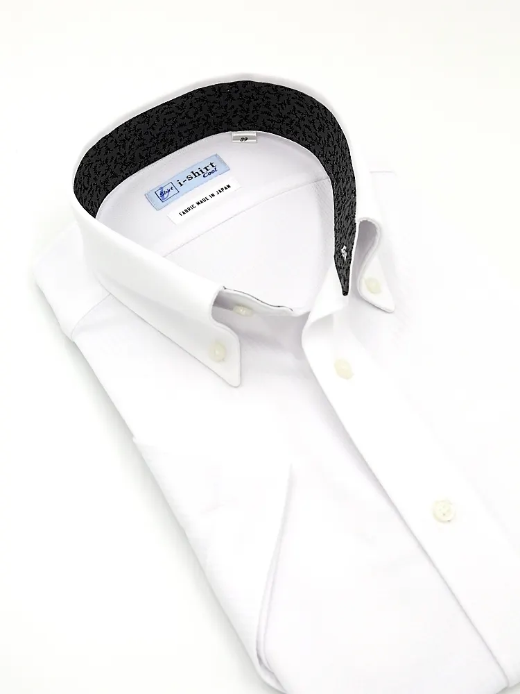 【完全ノーアイロン】半袖アイシャツボタンダウン【バイオセンサークール生地使用】高通気冷感織柄無地ワイシャツi-shirt春夏