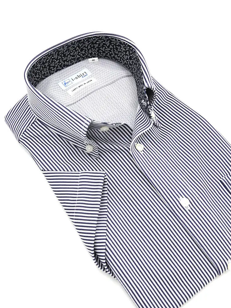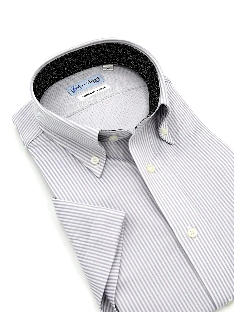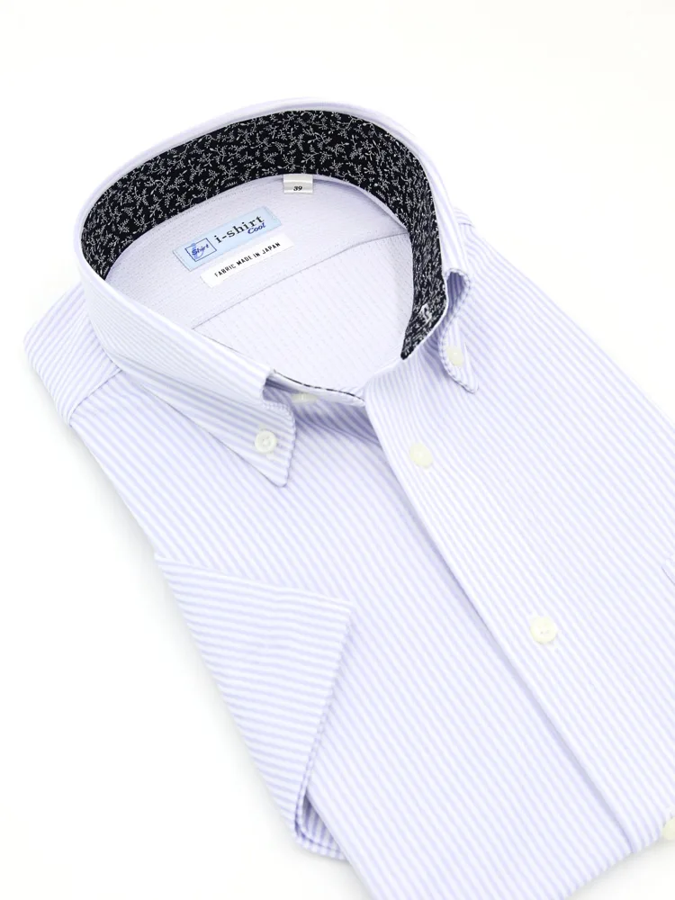 【完全ノーアイロン】半袖 アイシャツ ボタンダウン【DRY AIR生地使用】通気性 ストライプ ワイシャツ i-shirt 春夏(ホワイト)