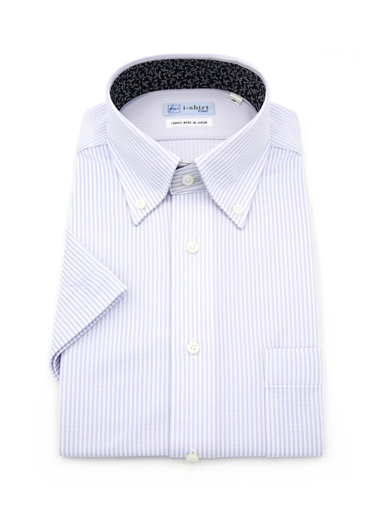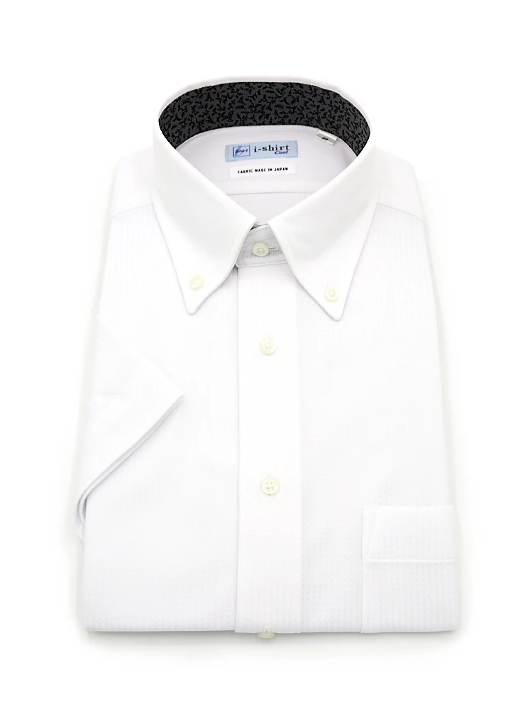 【完全ノーアイロン】半袖アイシャツボタンダウン【バイオセンサークール生地使用】高通気冷感ツイル織柄無地ワイシャツi-shirt春夏