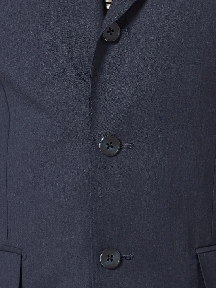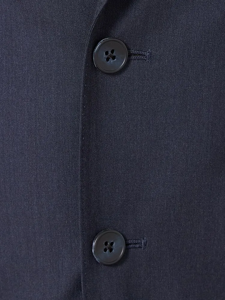 段返りの3つボタンデザインで、シンプルながらも品格を感じさせる仕上がり。きちんと感があり、フォーマルにも最適です。