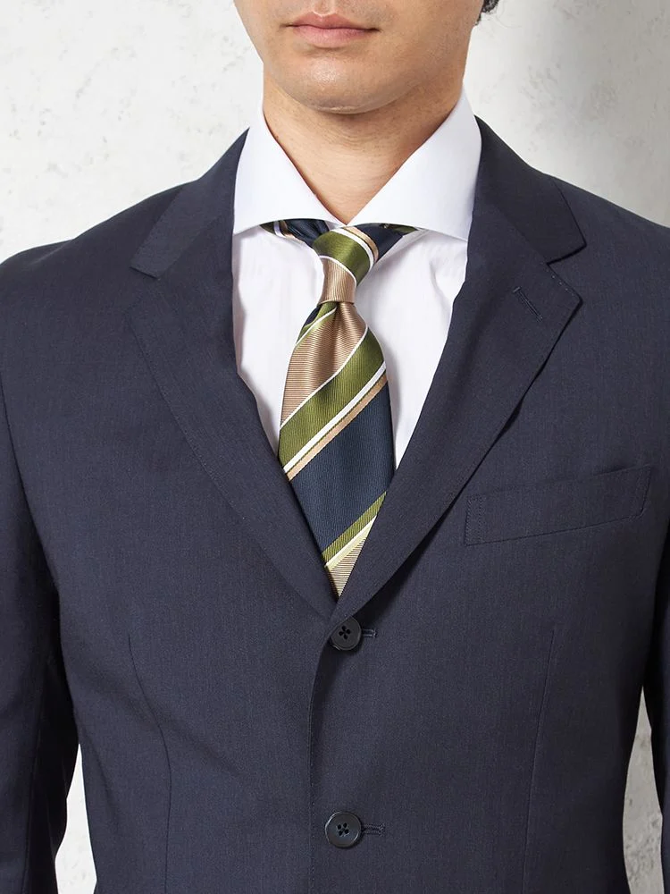 【軽量】スーツ2つボタンライトフィール【REDA社製生地】ネイビーストライプリッケンバッカー春夏