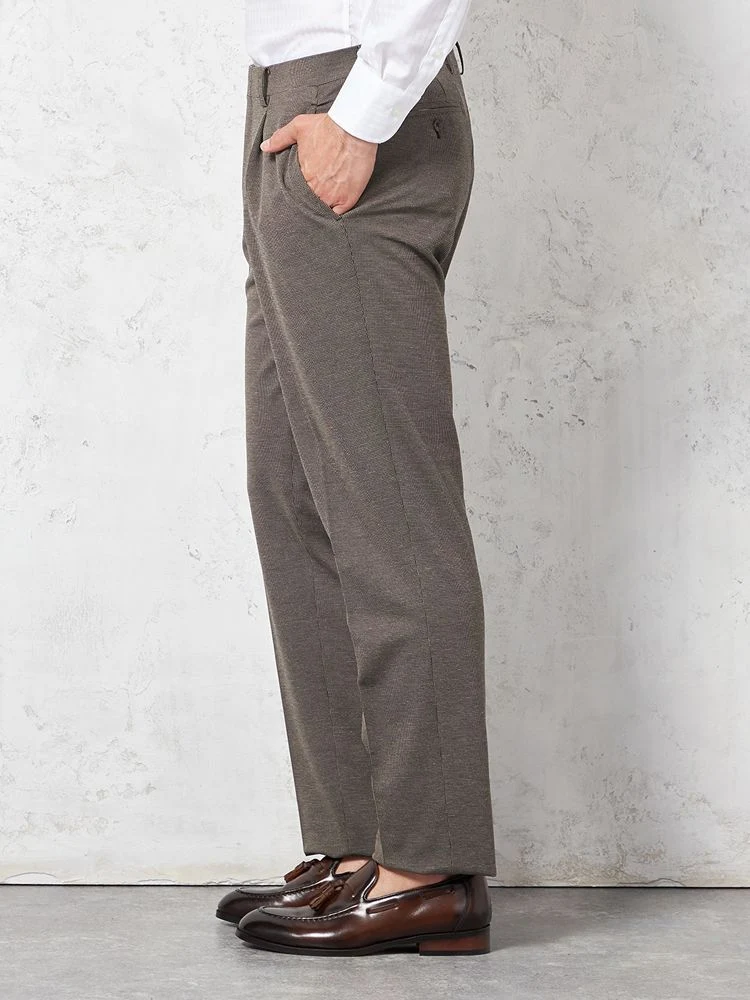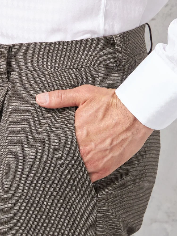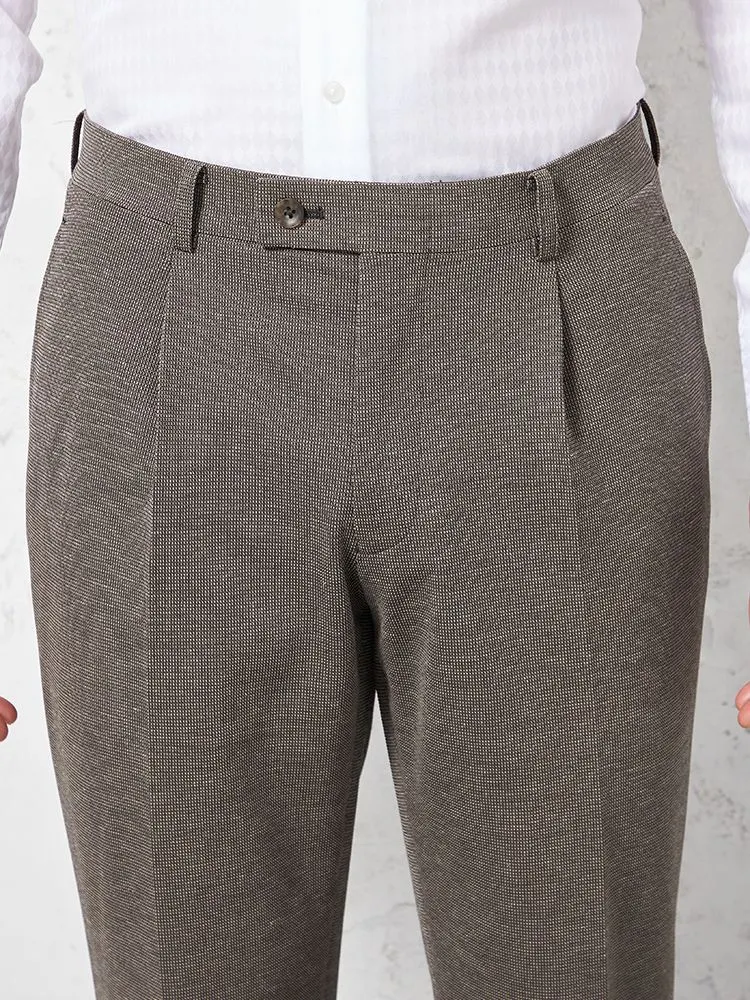 【ウォッシャブル】パンツ スラックス ワンタック【i-Pants-アイパンツ-】尾州麻混ニット素材 ストレッチ 春夏(ブラウン)