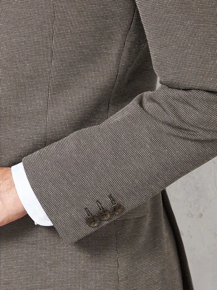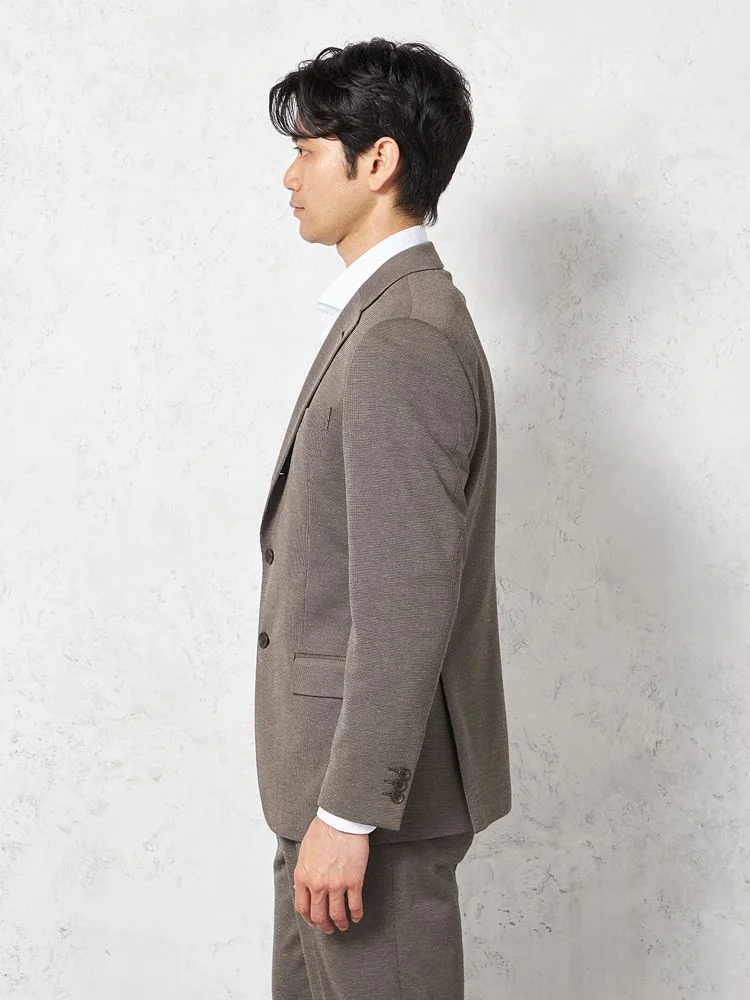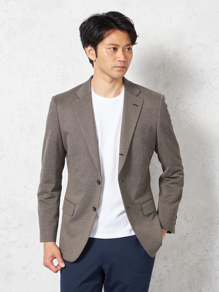 【ウォッシャブル】ジャケット 2つボタン【i-Jacket-アイジャケット-】尾州麻混ニット素材 クールモーション裏地 春夏(ブラウン)