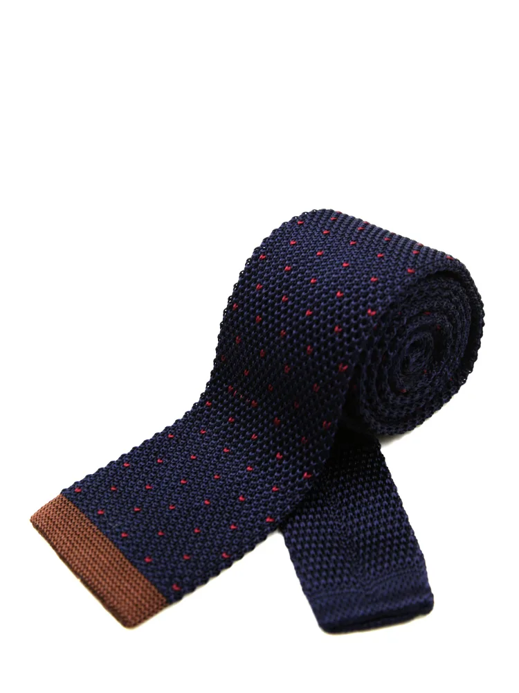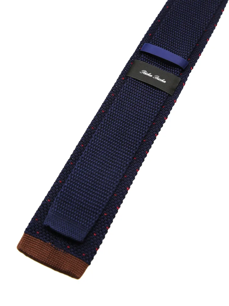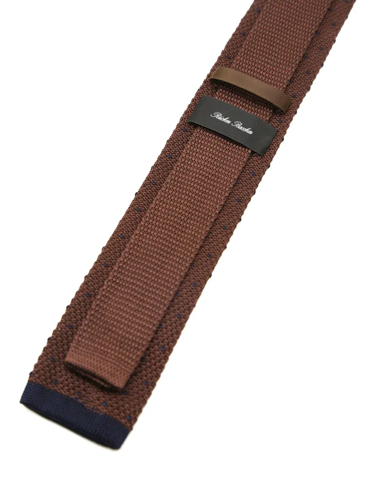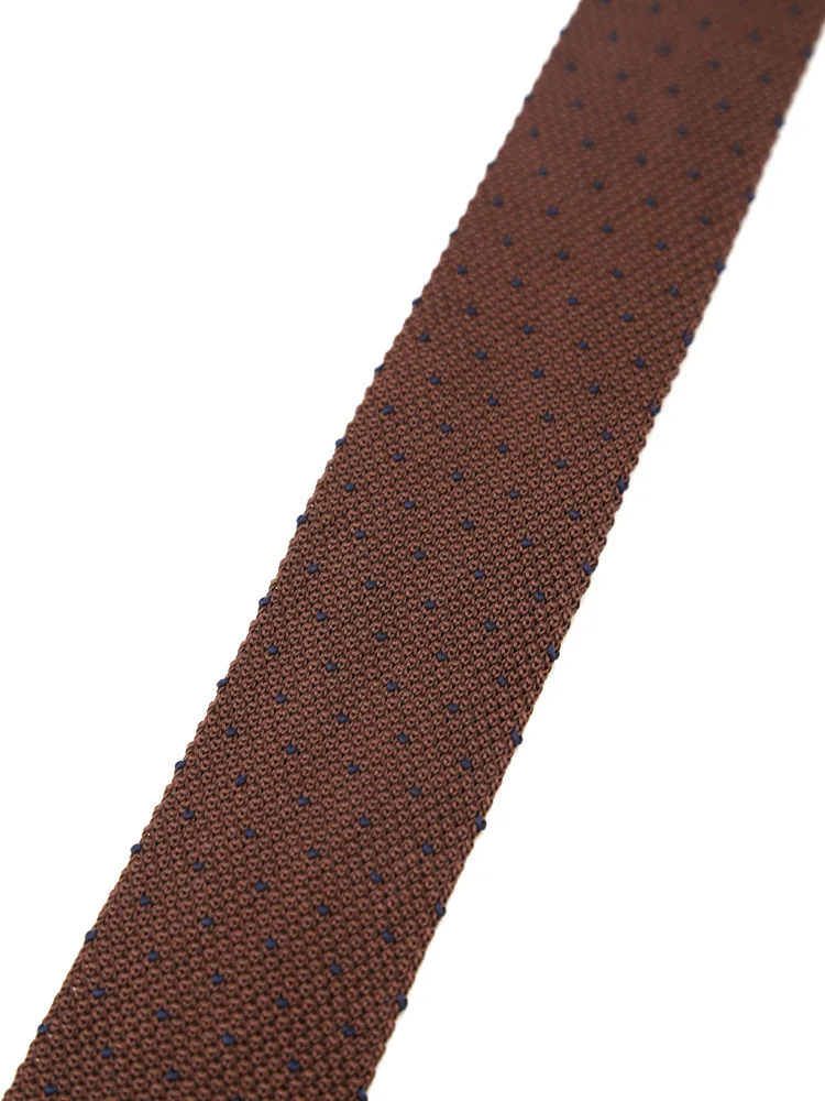 【シルク100%】ニットタイ ネクタイ ナロー シルク ドット リッケンバッカー(ブラウン)