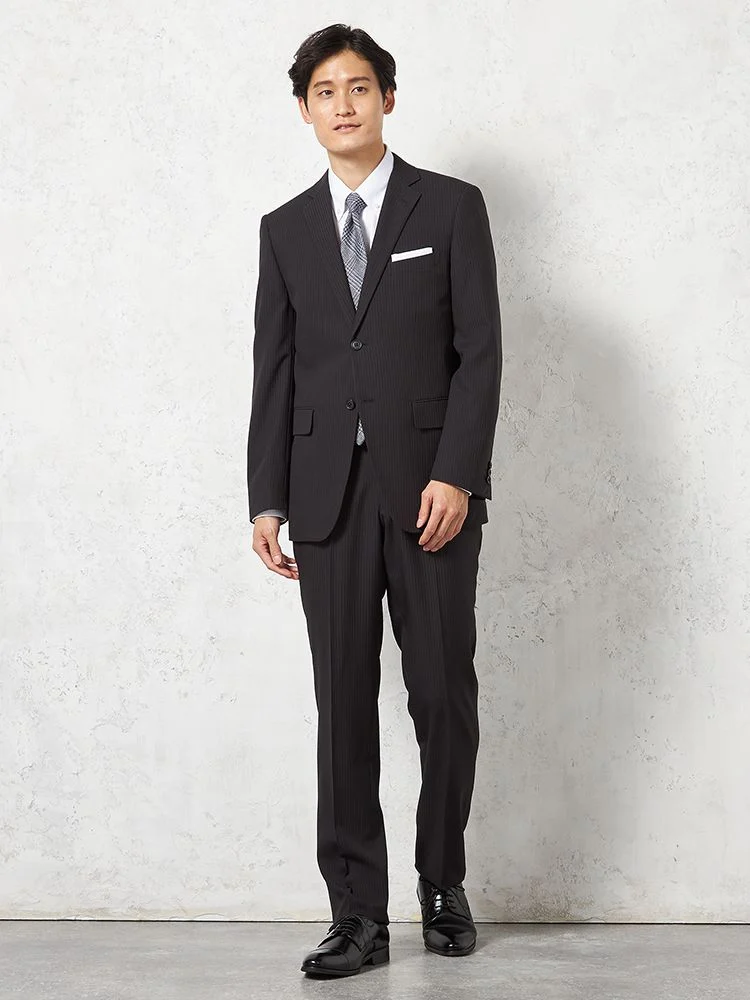 【即納】【WEB限定】スーツ 2つボタン4WAYストレッチ 上下ウォッシャブル シャドウストライプ ブラック