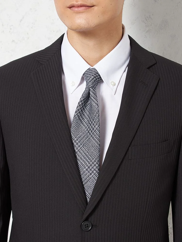 【即納】スーツ2つボタン【WEB限定】4WAYストレッチ織柄チャコールグレー通年