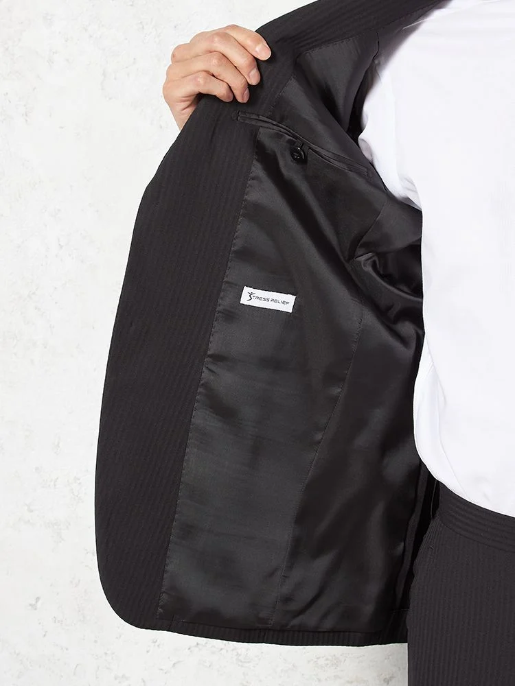 【上下ウォッシャブル】スーツ2つボタンニットストレッチ定番黒シャドウストライプリッケンバッカー【i-Suit-アイスーツ-】通年