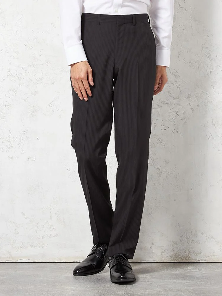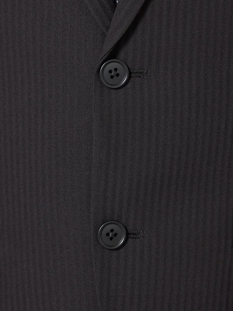 【ウォッシャブル】スリーピーススーツ2つボタンウール混ノータックストライプnero