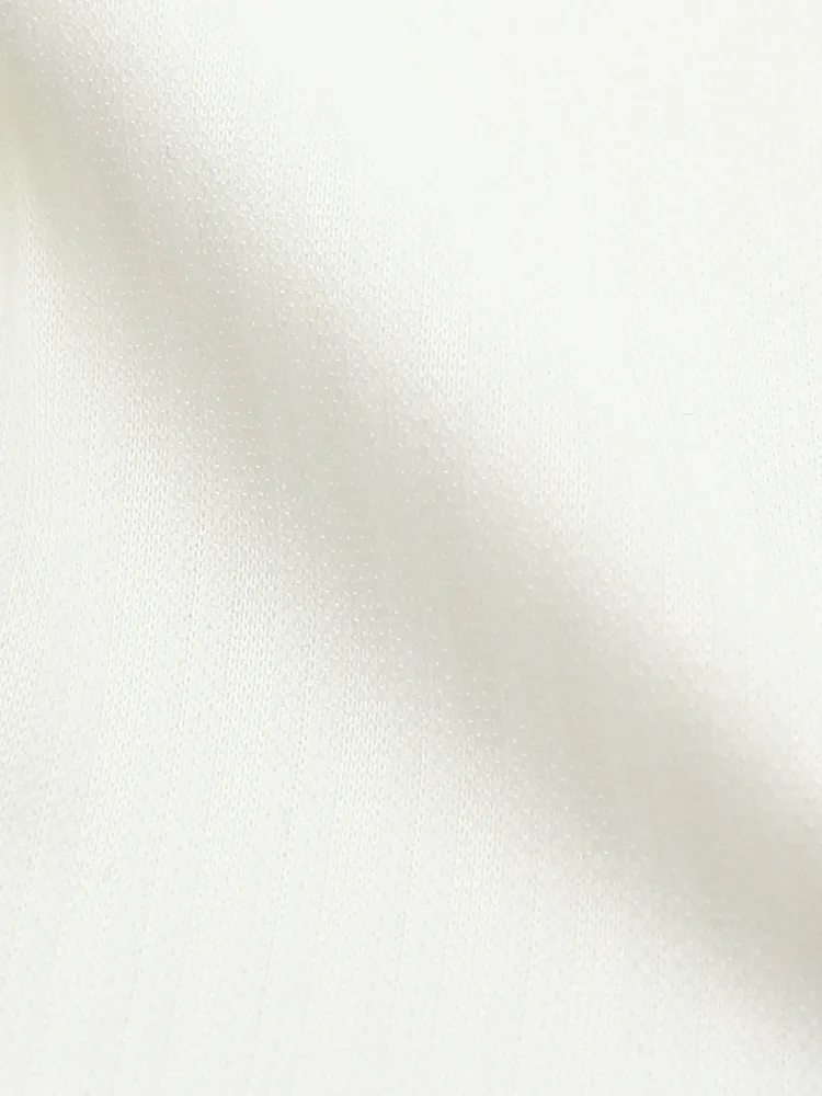 こだわりの日本製生地はソフトなポリエステルニットで、スポーツウェア等にも使われる高機能素材。体の動きに合わせて生地が伸び縮みする高いストレッチ性が特徴で、動作時の負荷が少なく着用ストレスも軽減します。