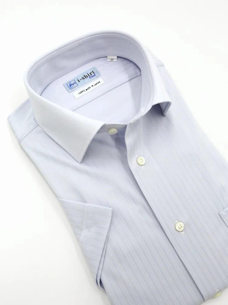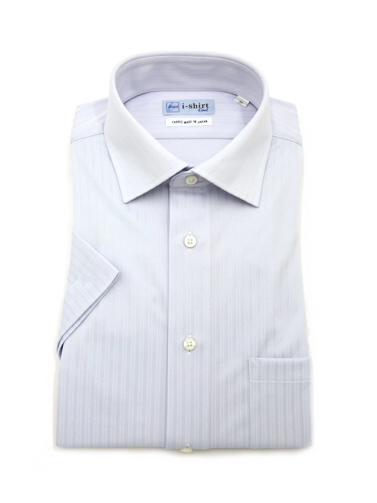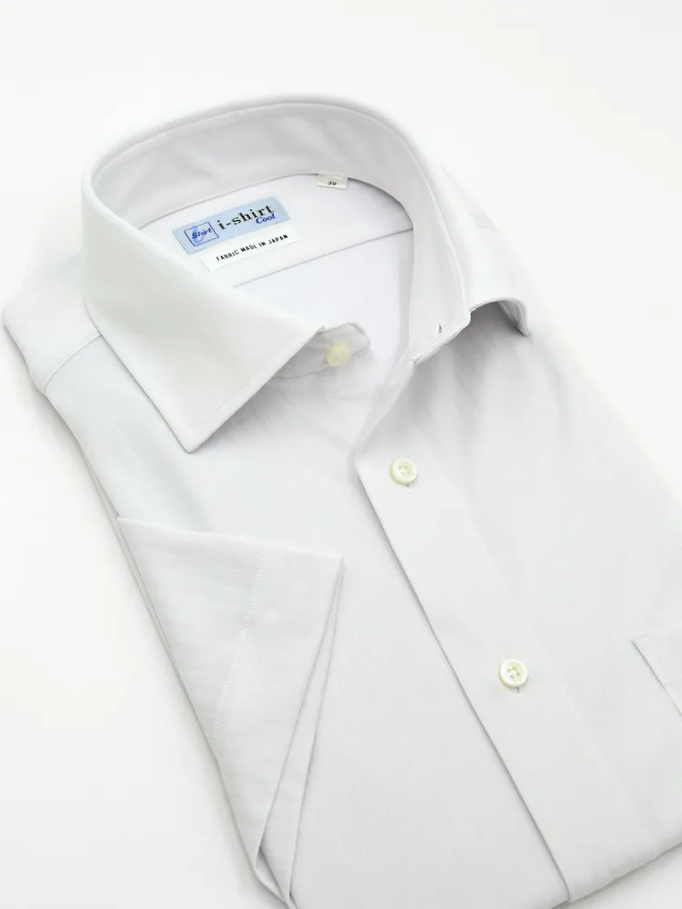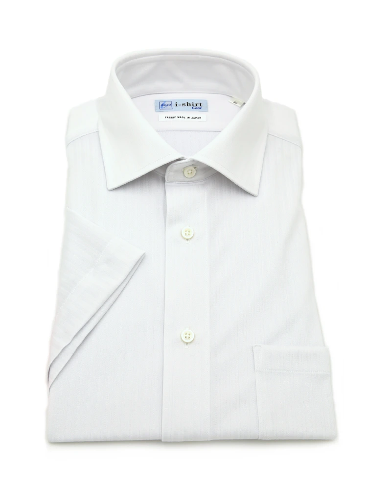 【完全ノーアイロン】半袖 アイシャツ セミワイド【バイオセンサークール生地使用】高通気 冷感 シャドウストライプ 織柄無地 ワイシャツ i-shirt 春夏(ホワイト)